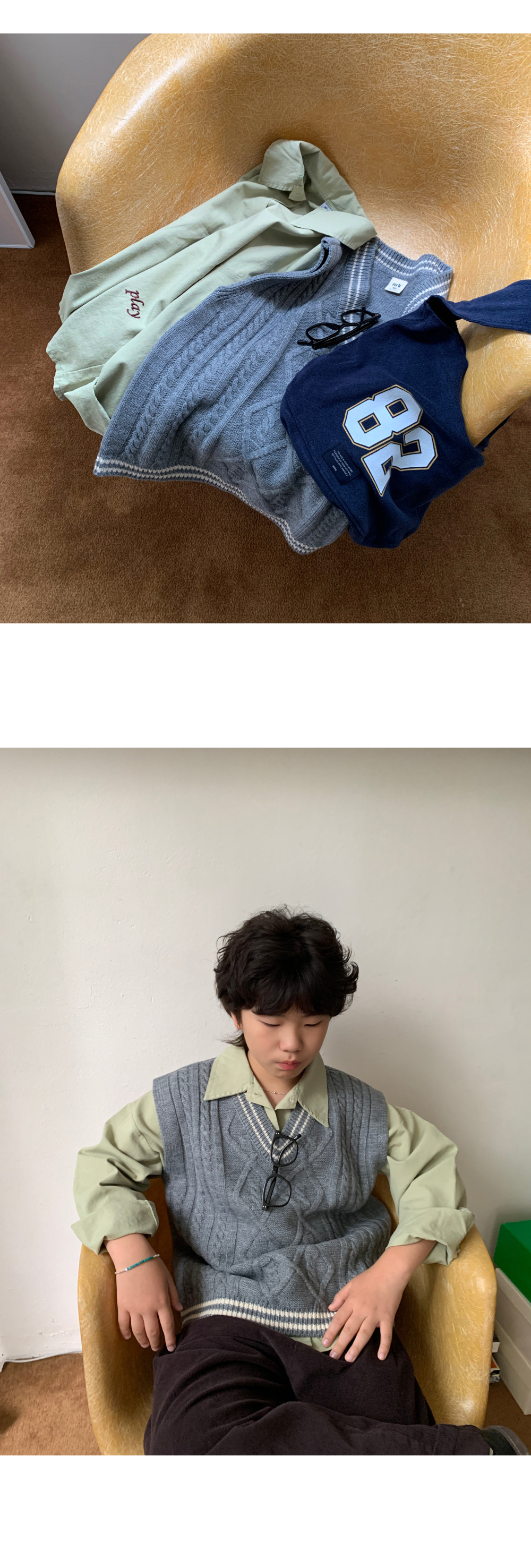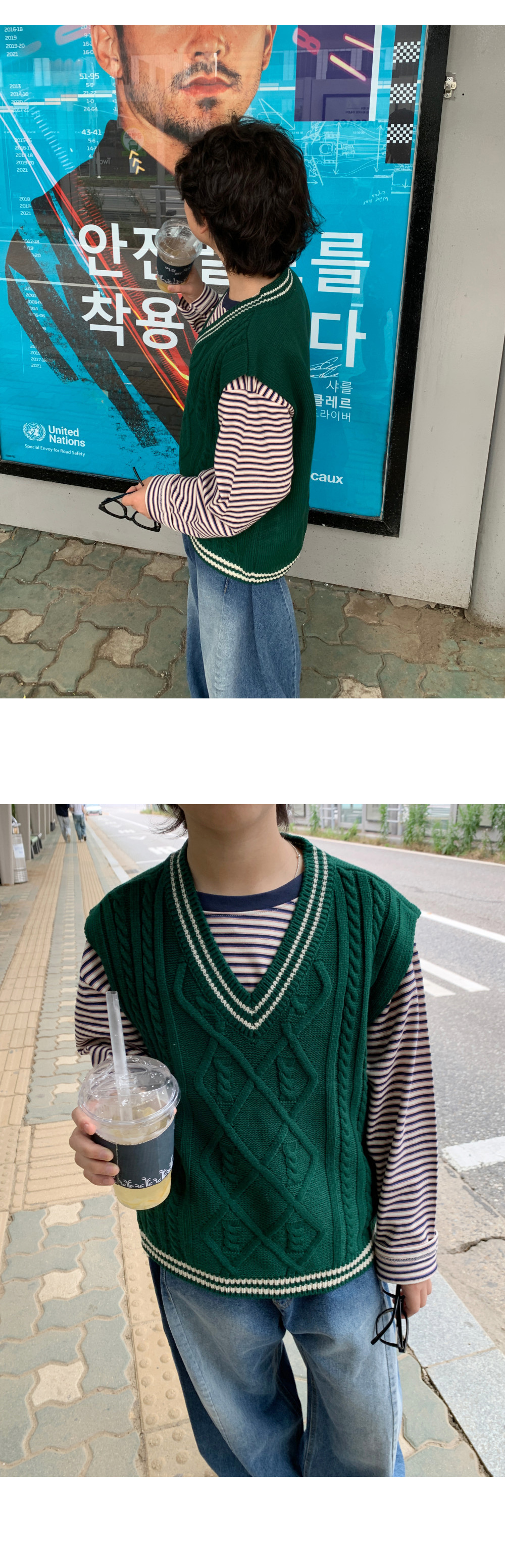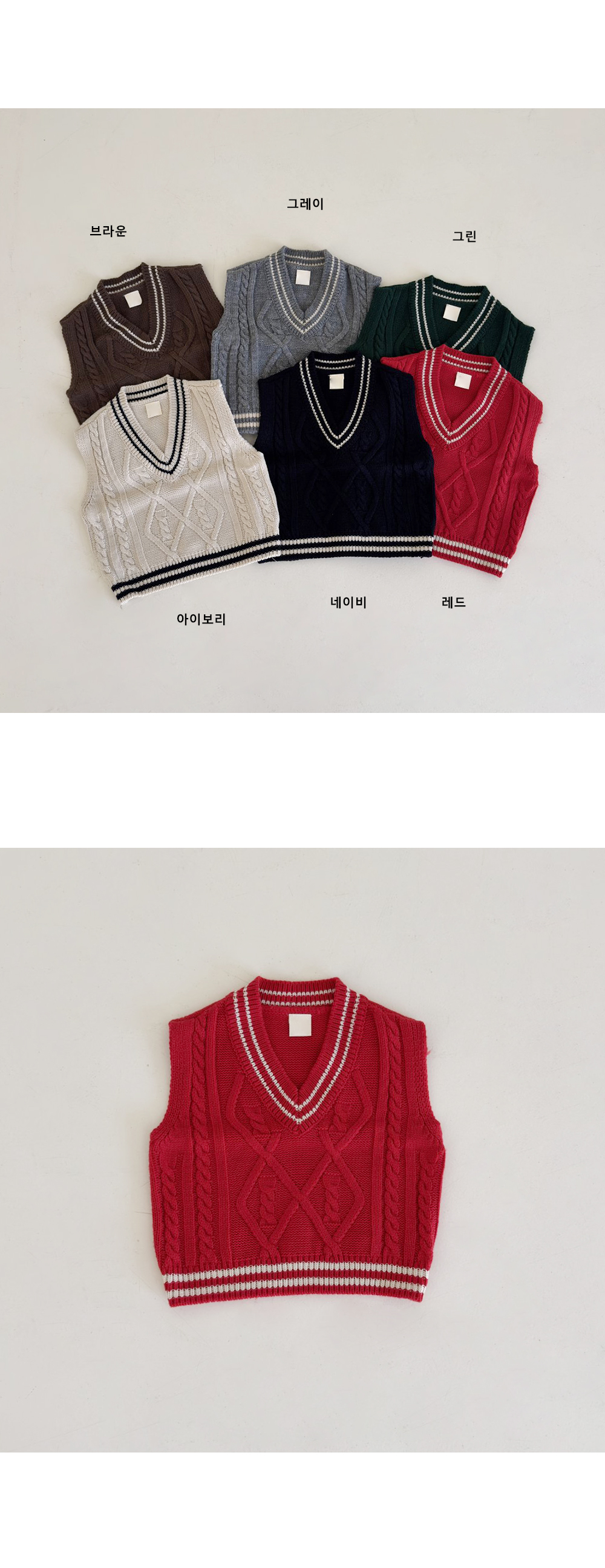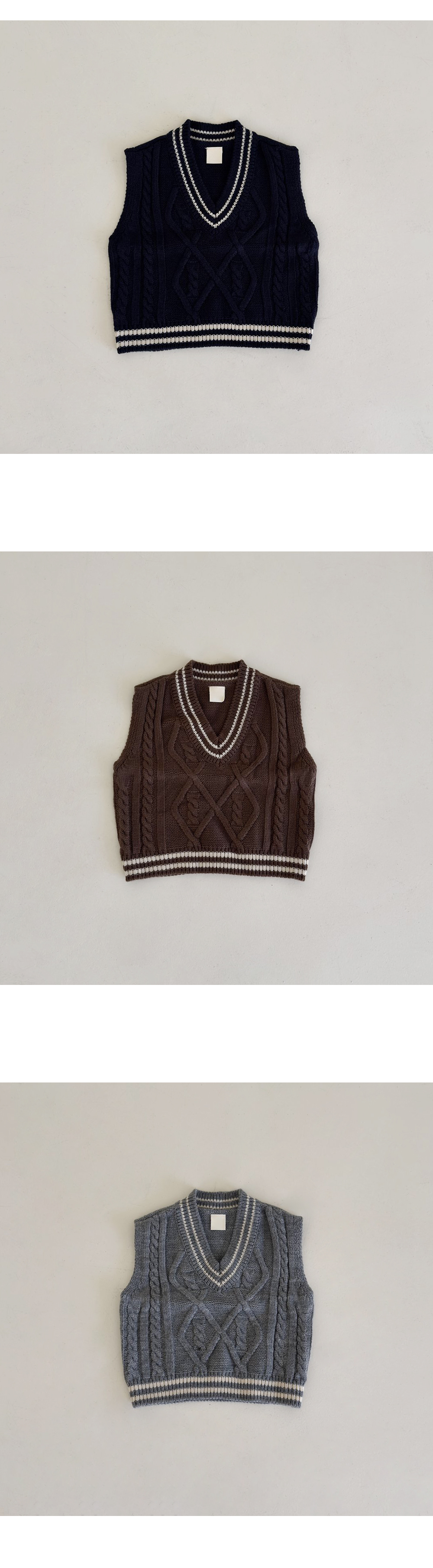 매 시즌 사랑받는 클래식 디자인의 케이블 니트조끼예요.