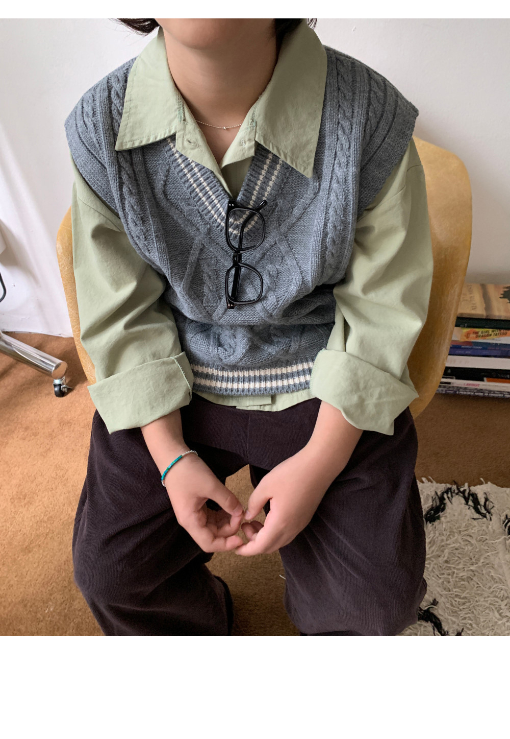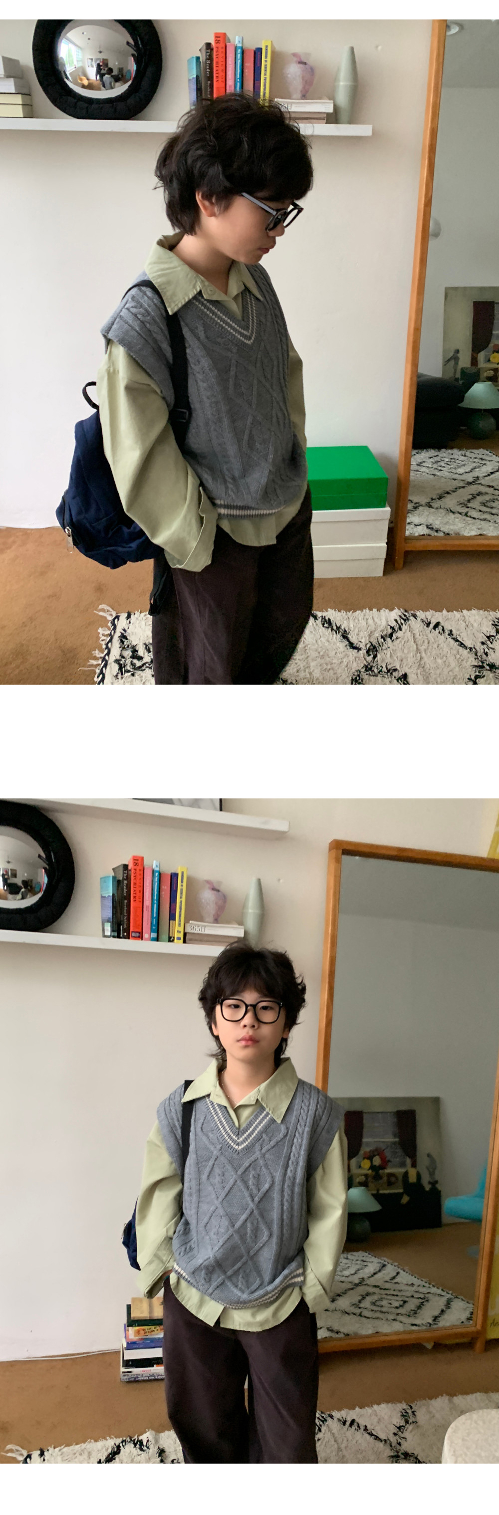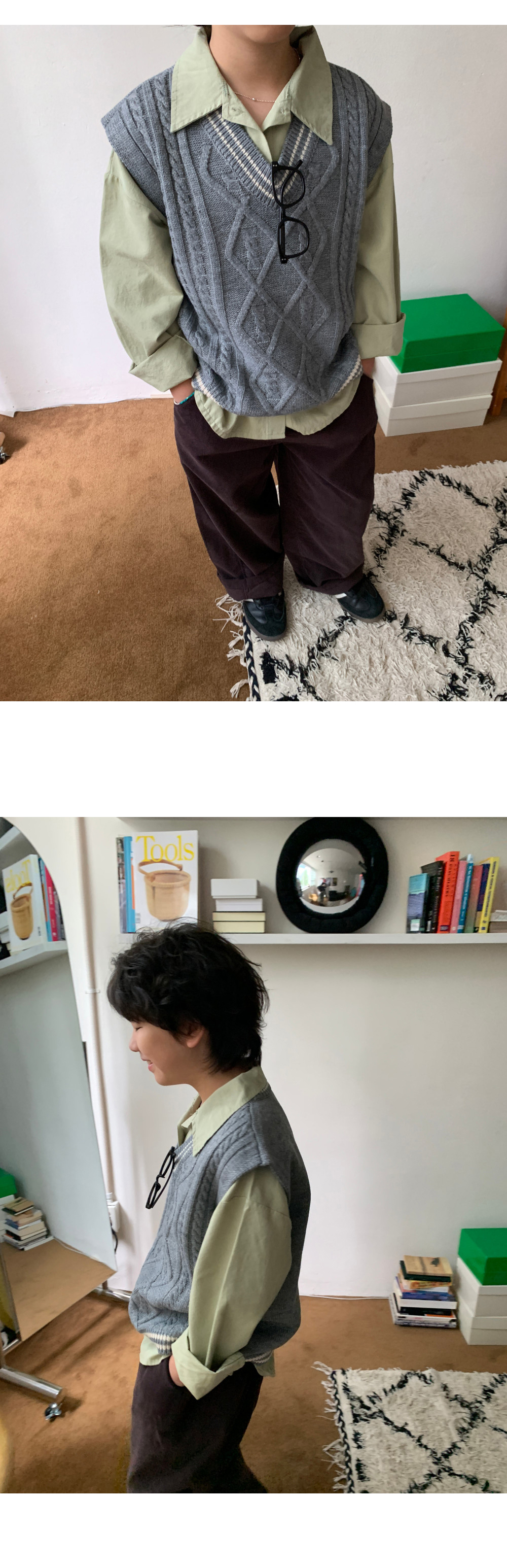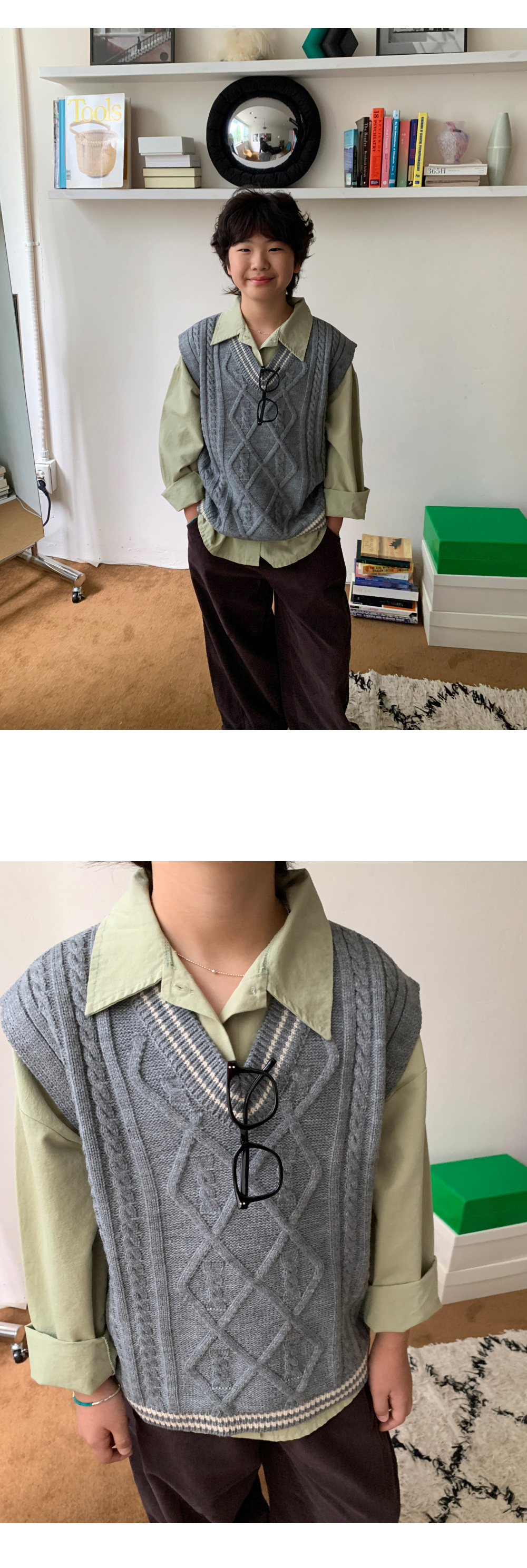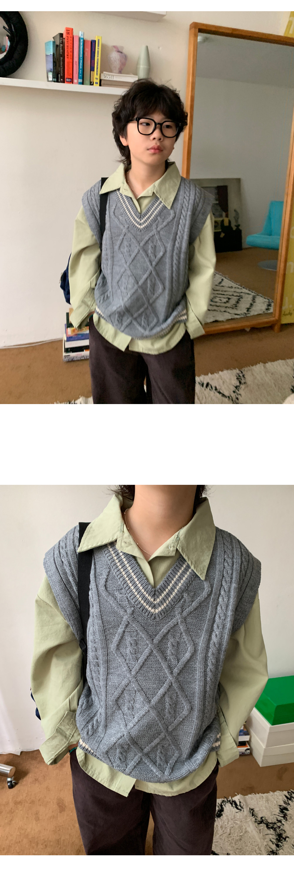 매 시즌 사랑받는 클래식 디자인의 케이블 니트조끼예요.