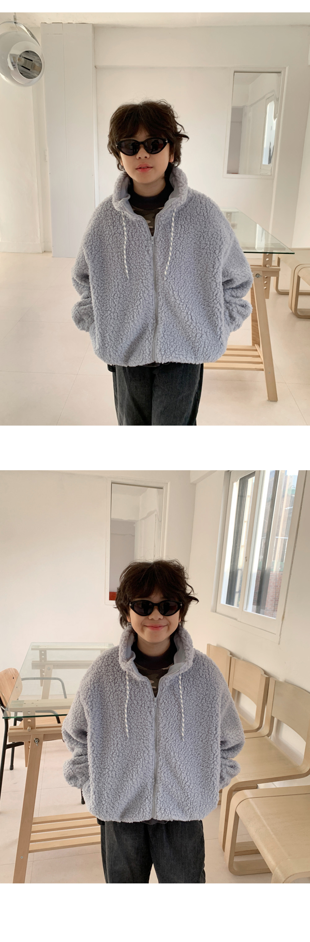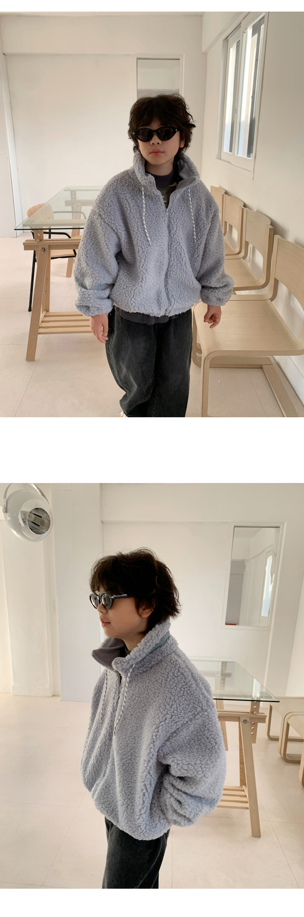 한겨울에도 든든한 폴리 100% 양털소재로 제작된 하프넥 덤블집업이에요.