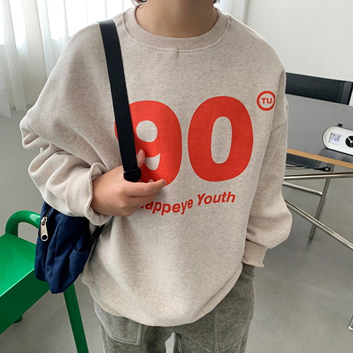 전면의 ‘90°’ 레터링 프린트가 시선을 사로잡는 포인트 맨투맨이에요.