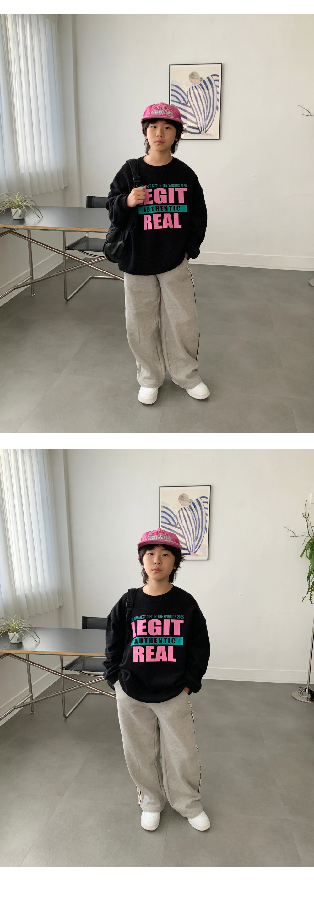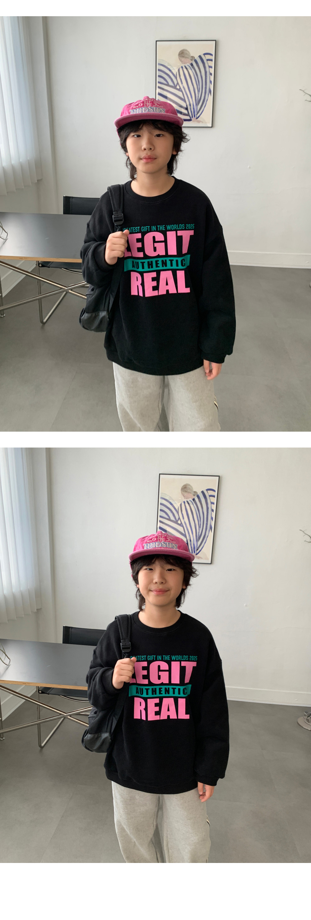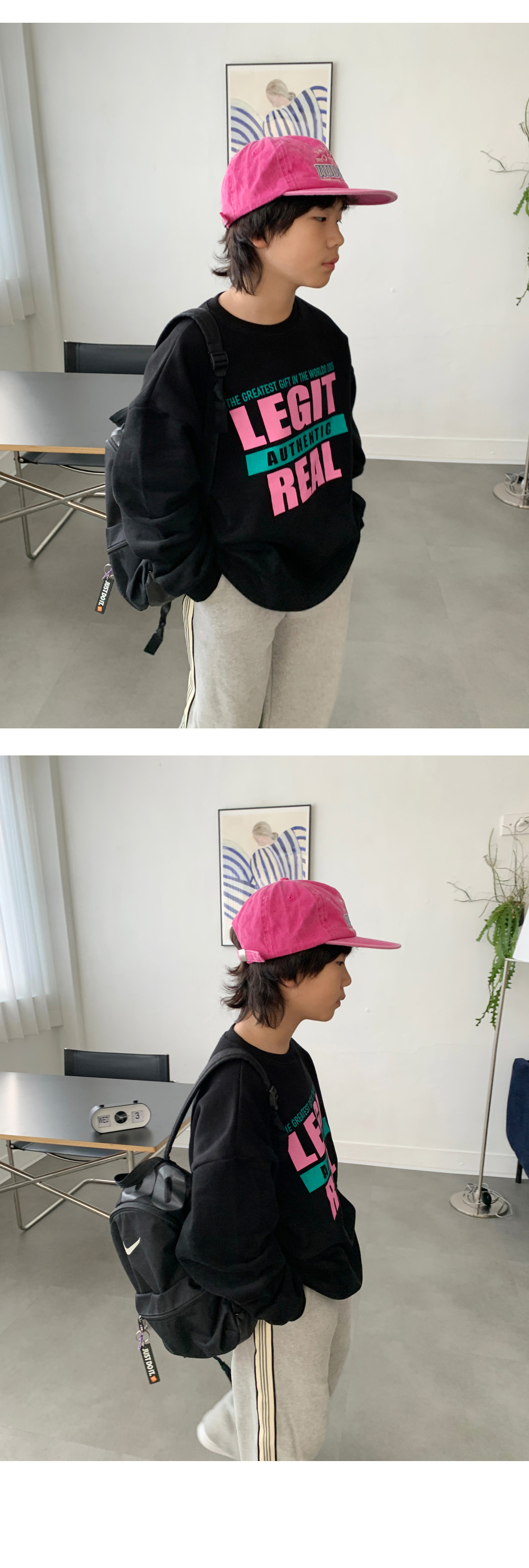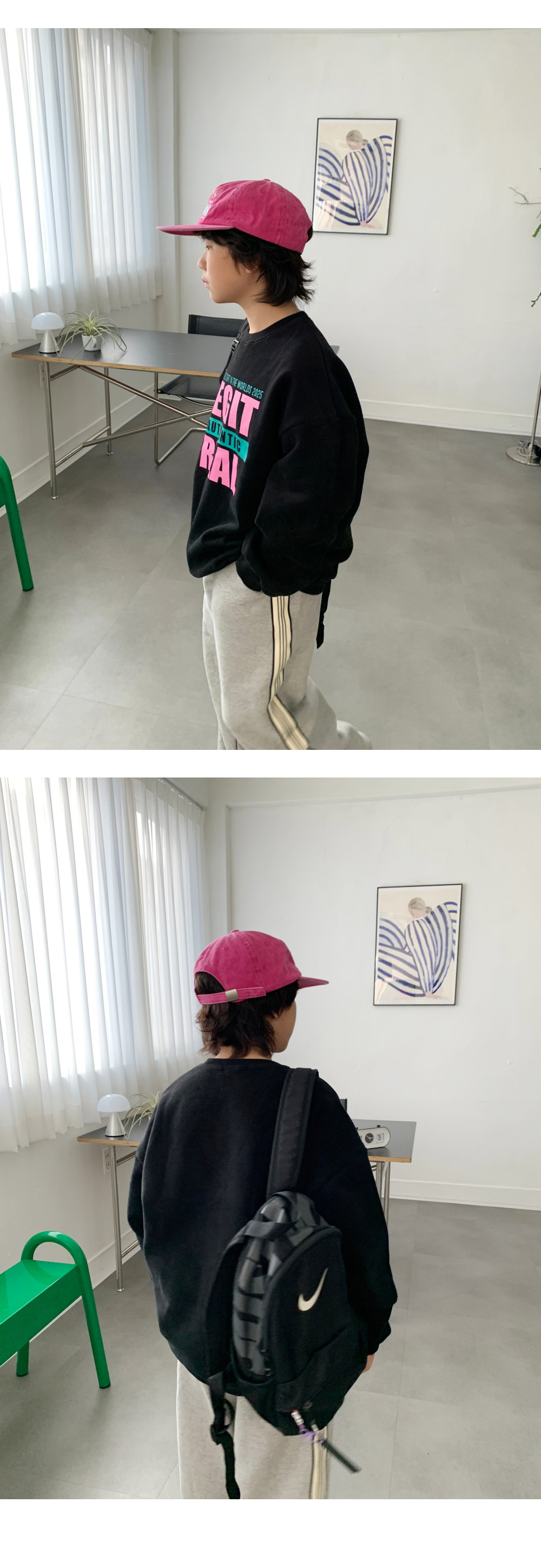✔ 포인트 : 레터링 컬러 배색 / 루즈핏 실루엣
