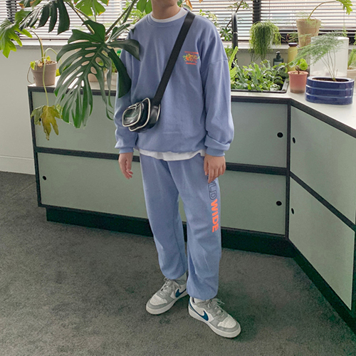 유니크한 백프린팅과 조거팬츠의 레터링으로