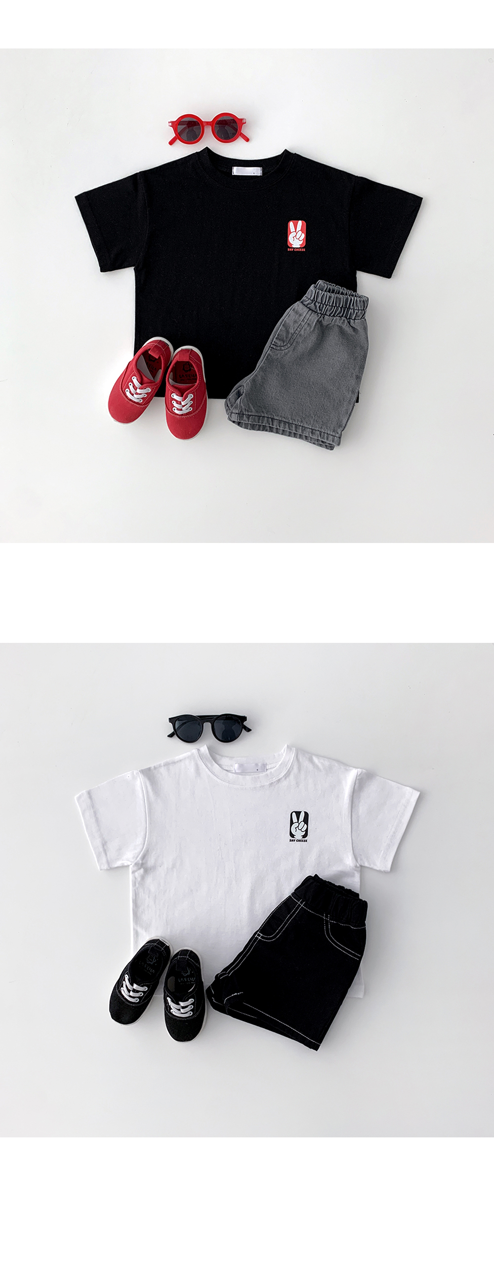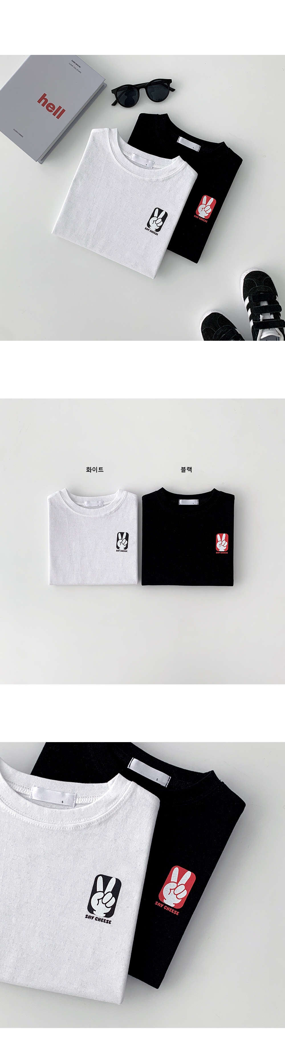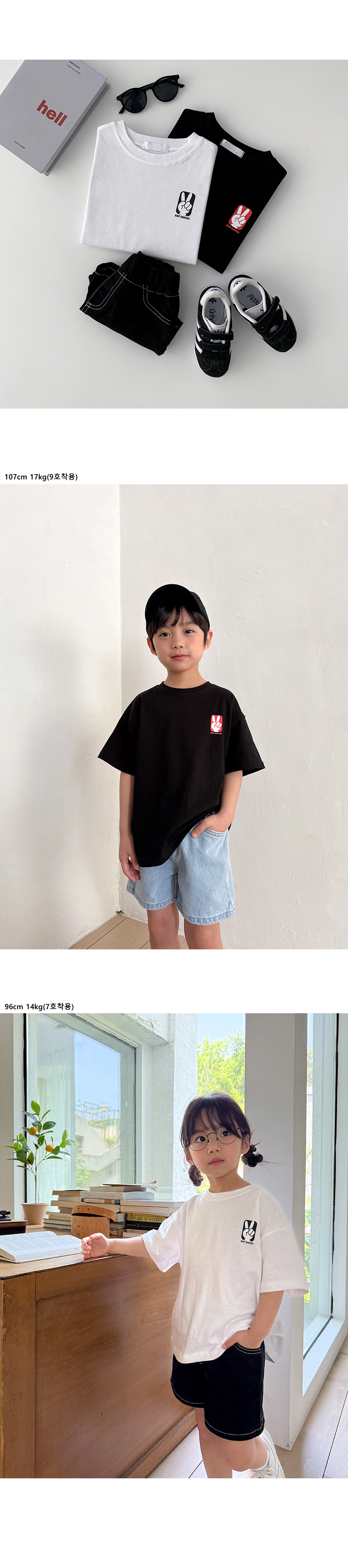 귀여운 브이 프린팅 반팔티입니다.
