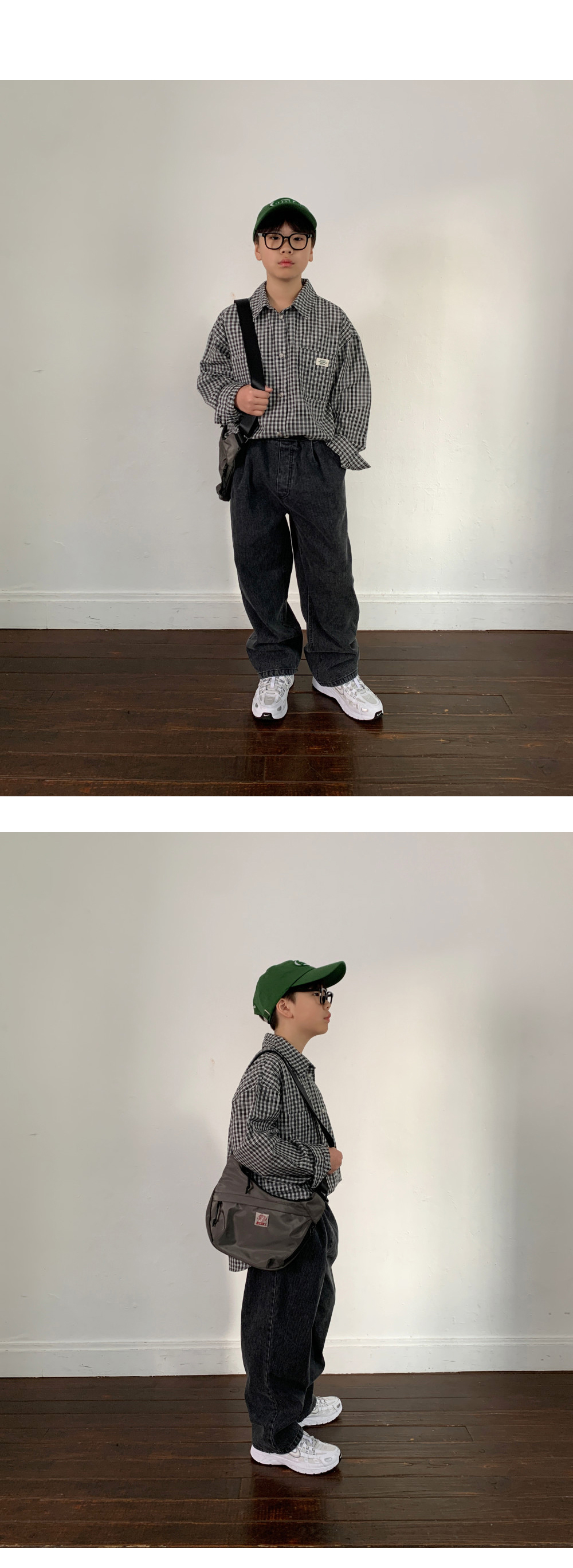 너무 크지 않은 체크 패턴으로 아이가 입었을 때 과하지 않고,