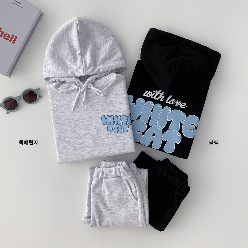 활동성 좋은 아이들을 위해 준비한 화이트캣 후드 상하세트!