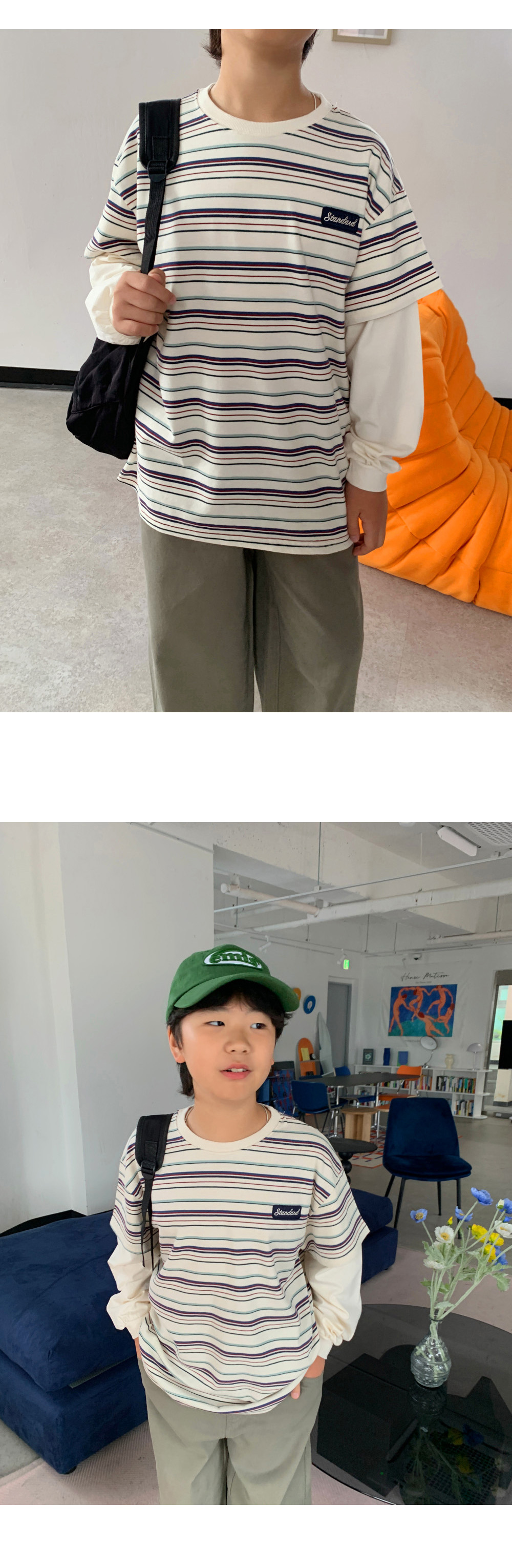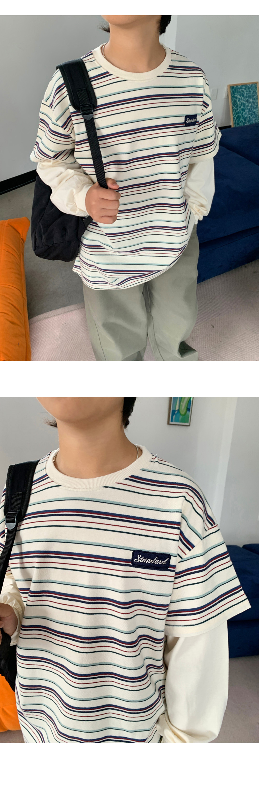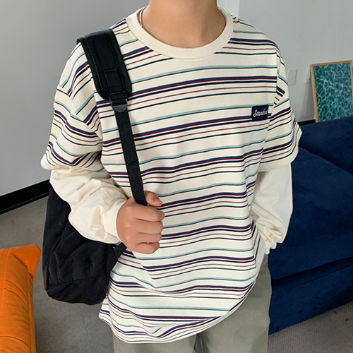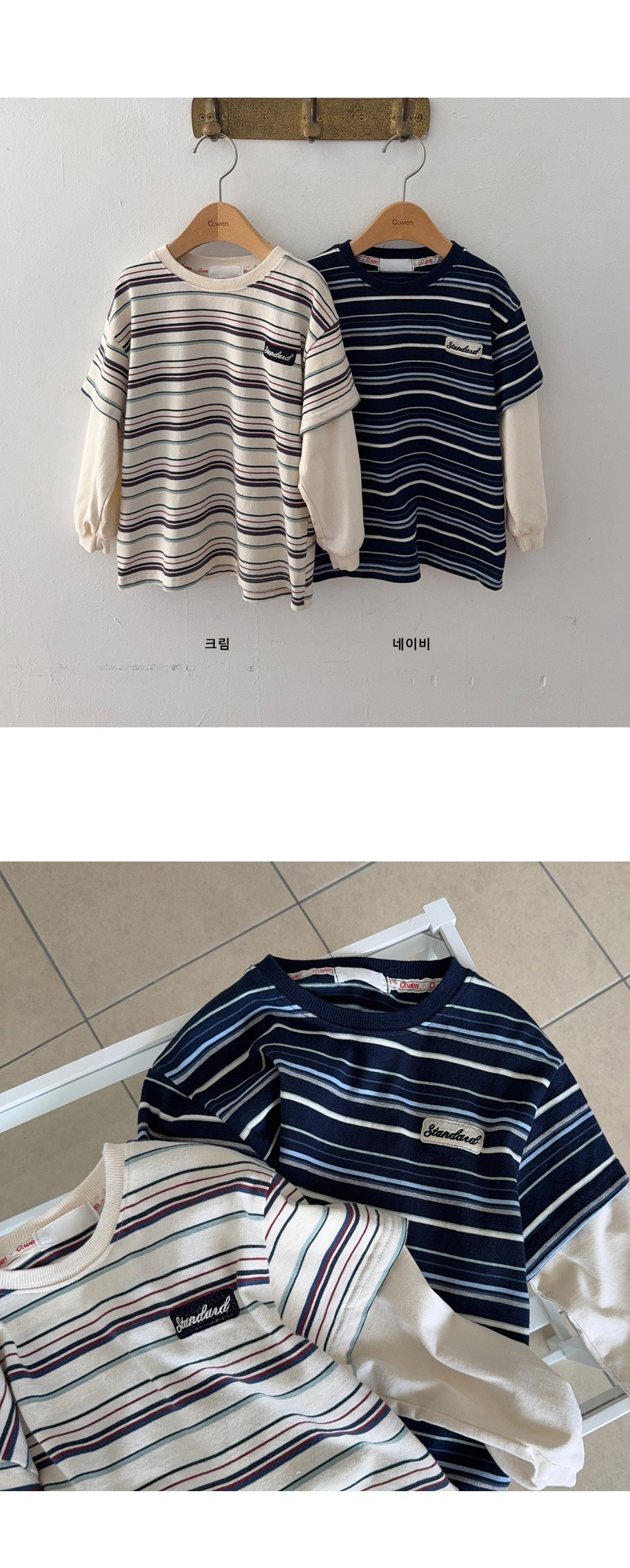 기본 라운드넥 디자인에 소매 부분은 레이어드된 듯한 이중 구조로,
