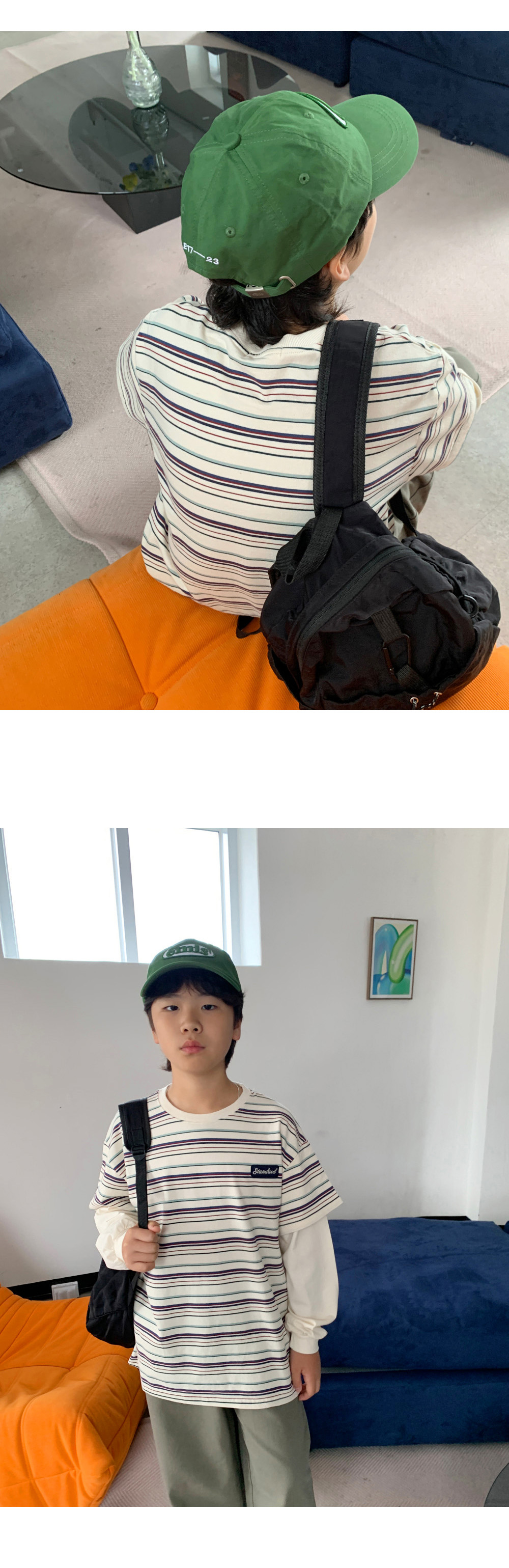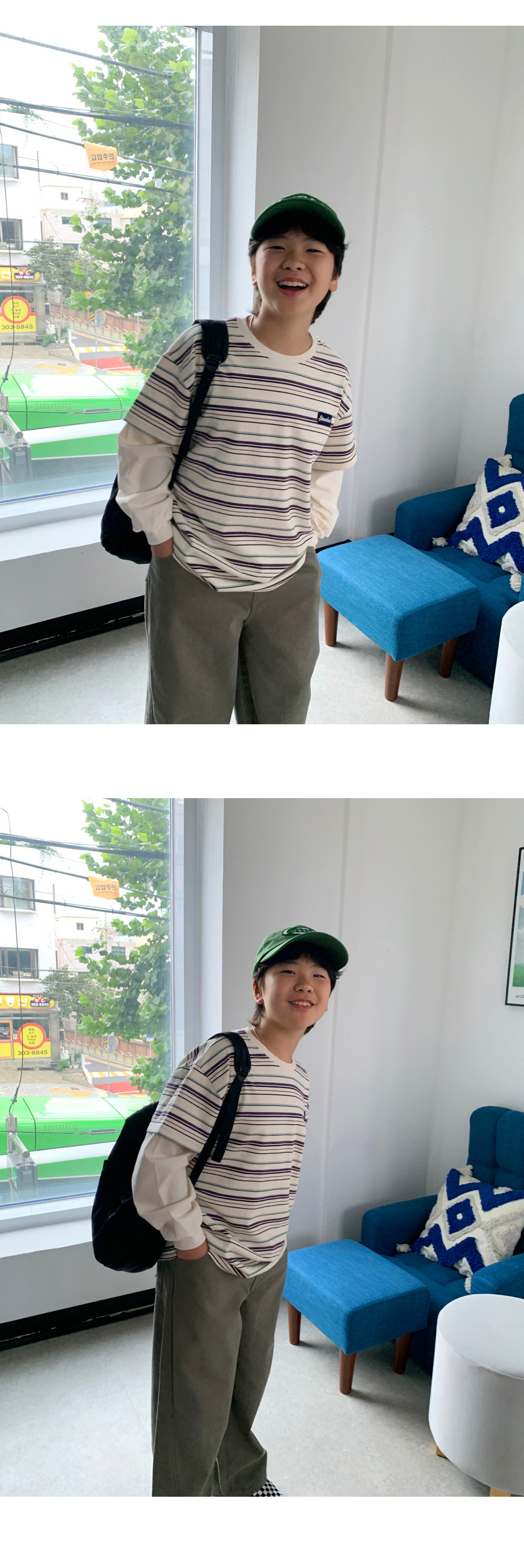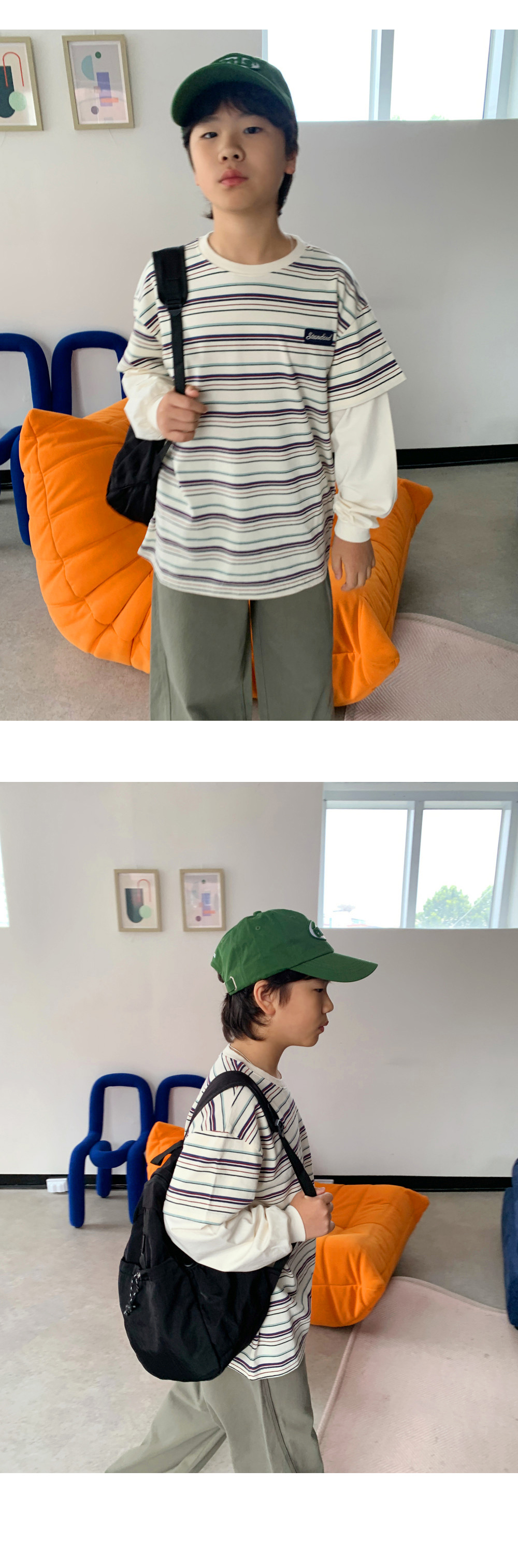 기본 라운드넥 디자인에 소매 부분은 레이어드된 듯한 이중 구조로,