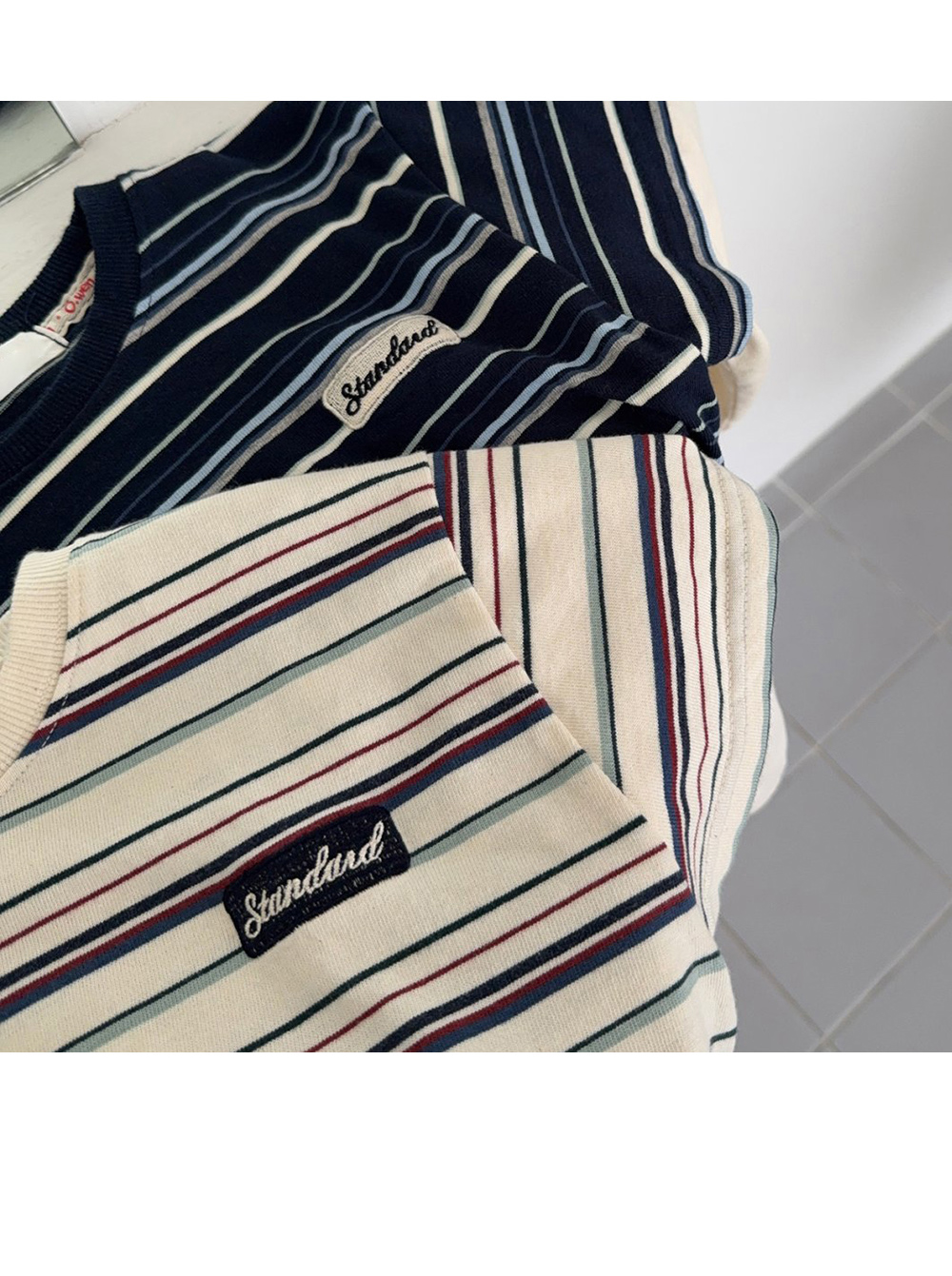 "Standard" 와펜으로 포인트를 준 감각적인 티셔츠예요.