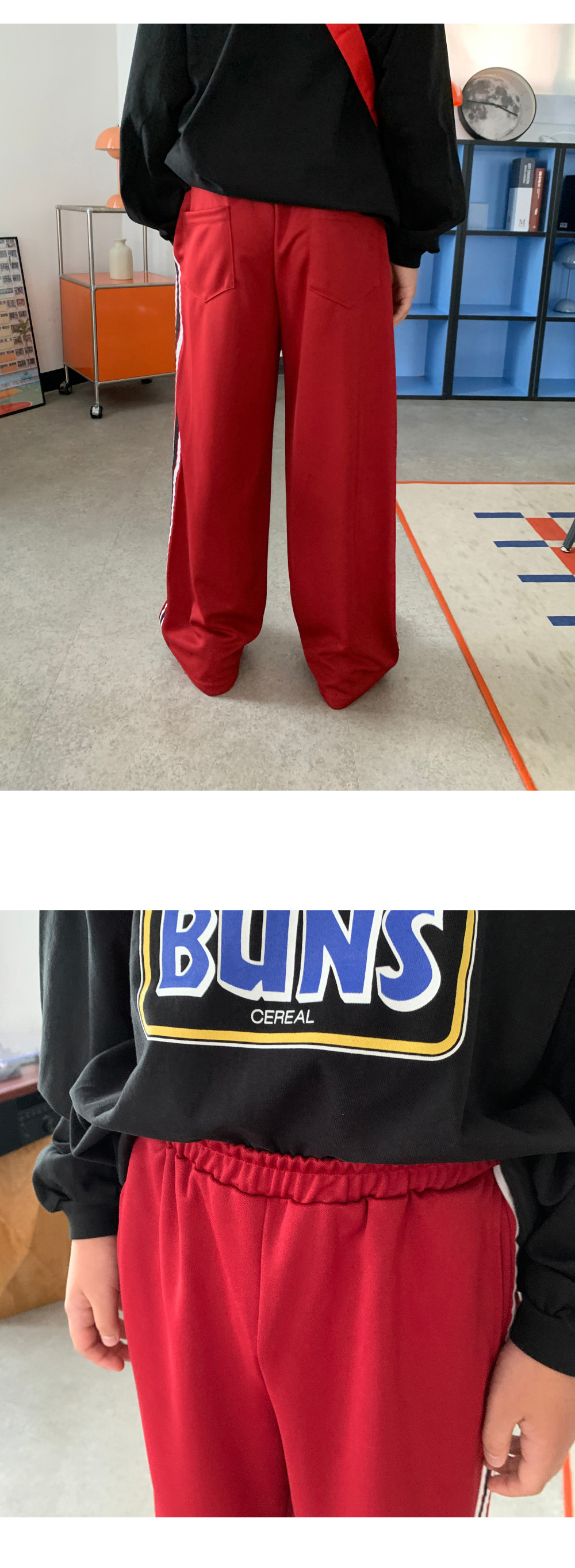 와이드핏 실루엣에 옆 라인을 따라 들어간 배색 디테일이 스포티하면서도 감각적인 포인트를 더해줘요.