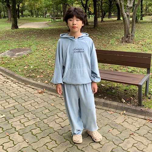 편안함과 스타일을 동시에 챙긴 벨벳 후드 상하세트예요.
