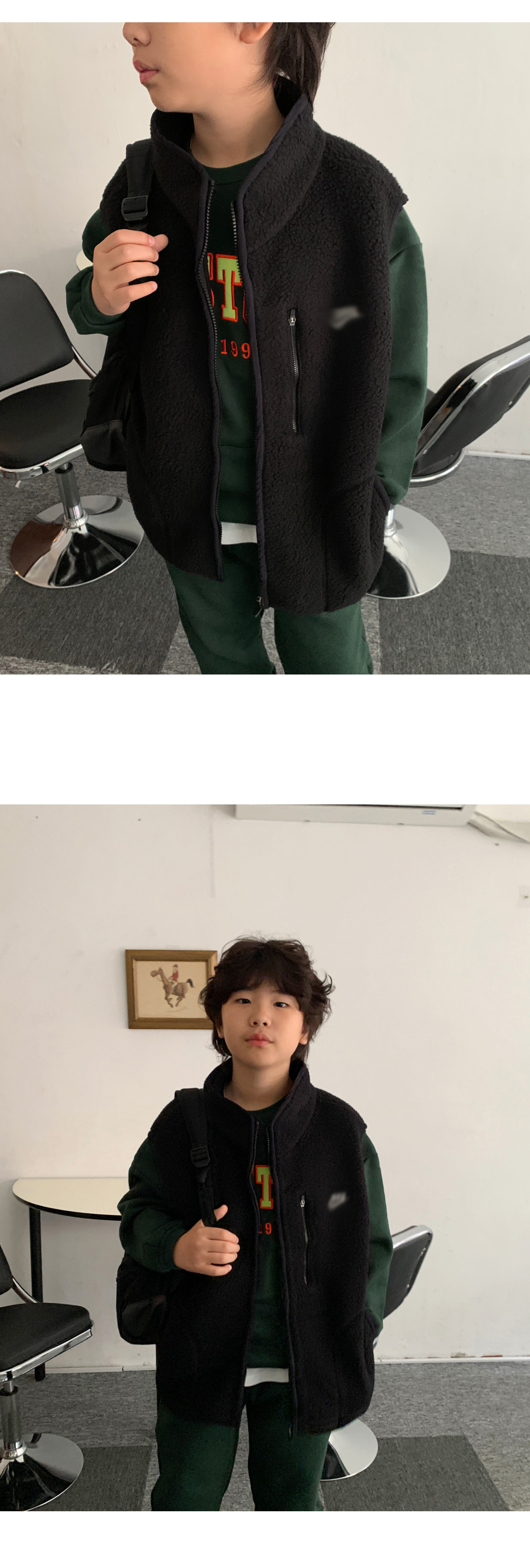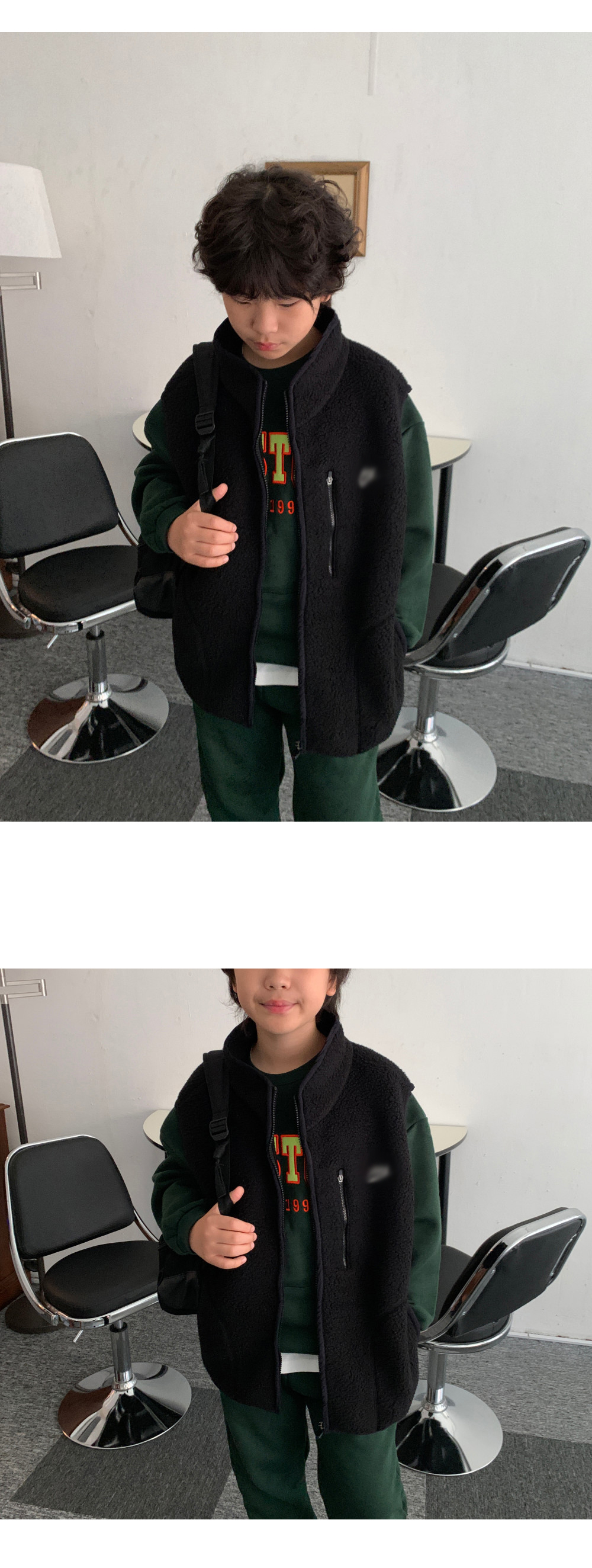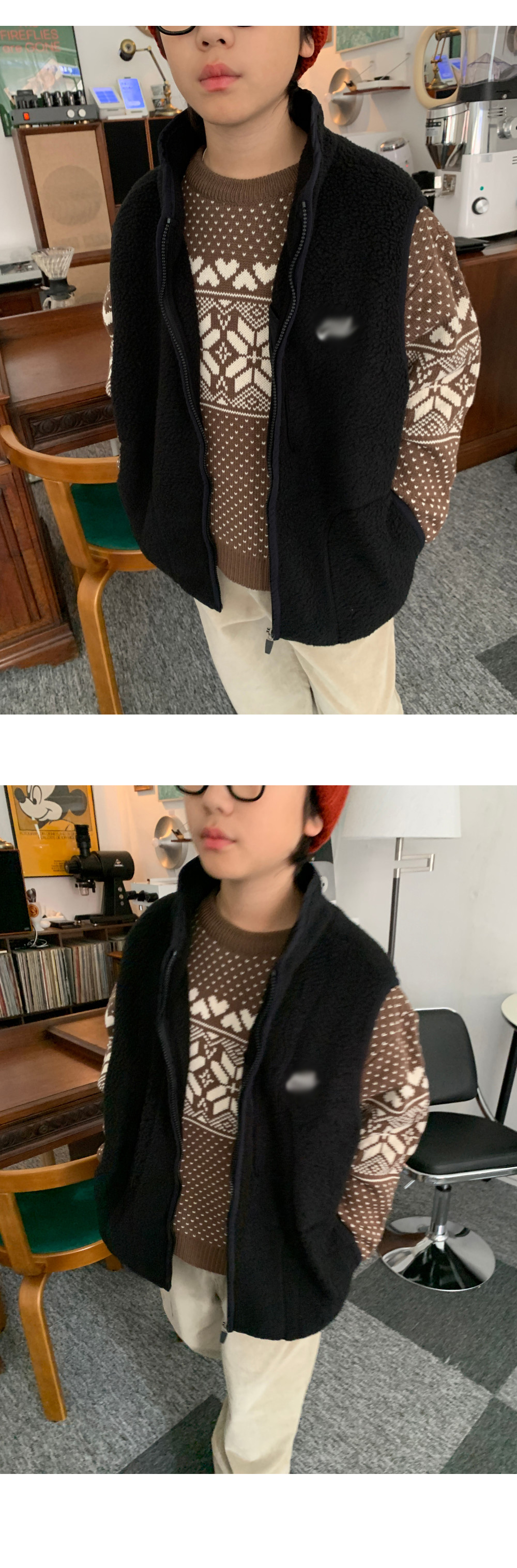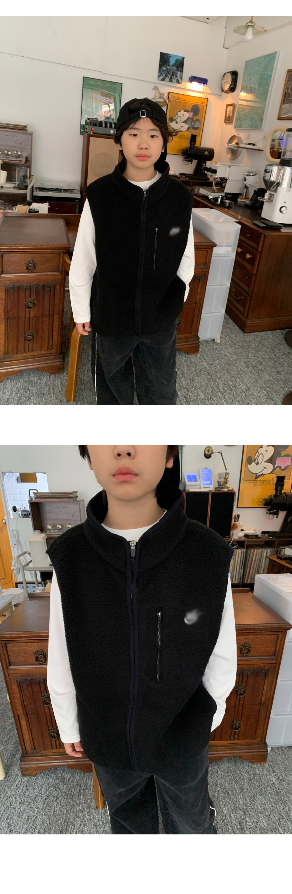 가볍지만 확실한 보온력을 자랑하는 오버핏 후리스 조끼예요.