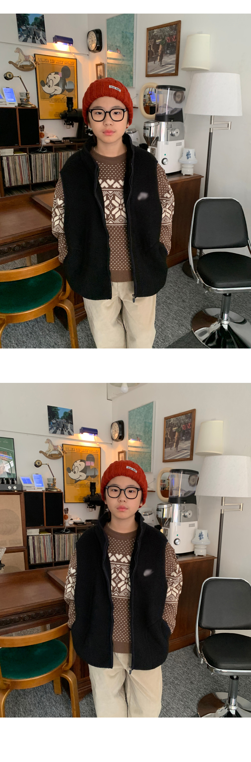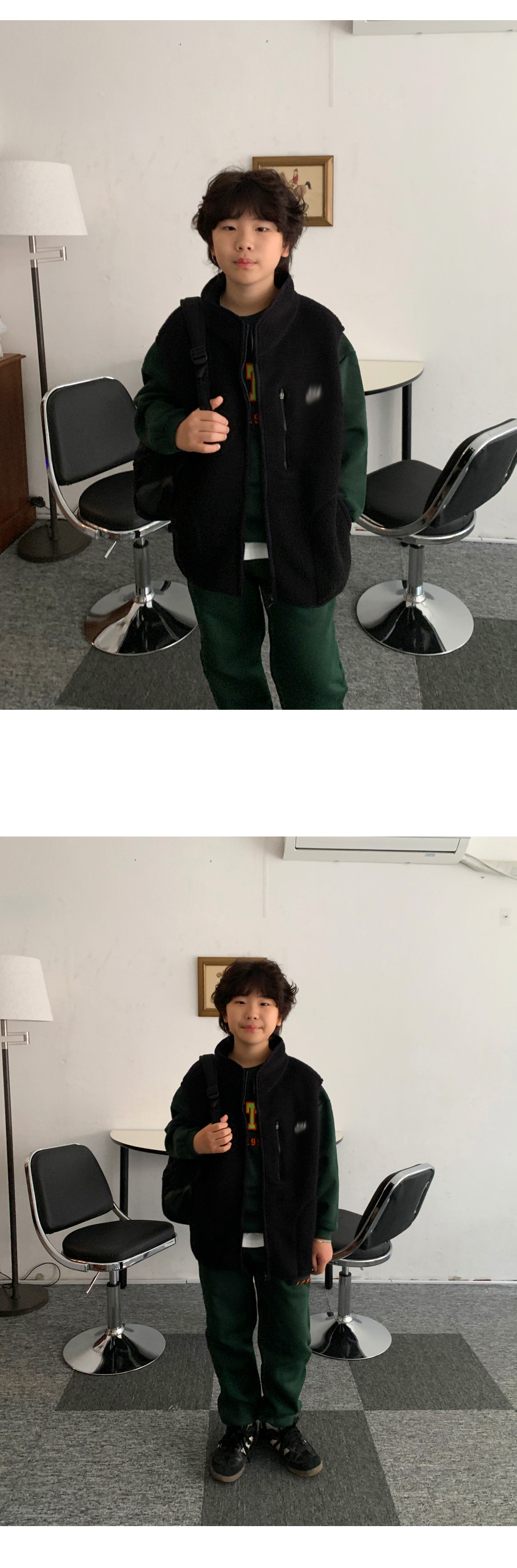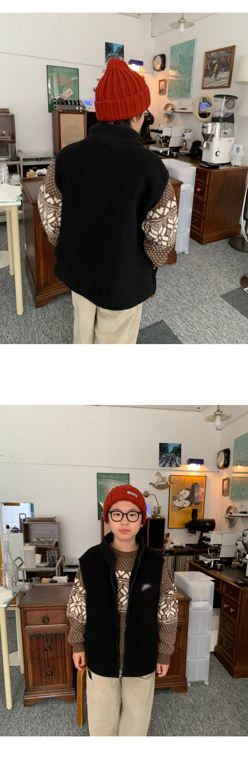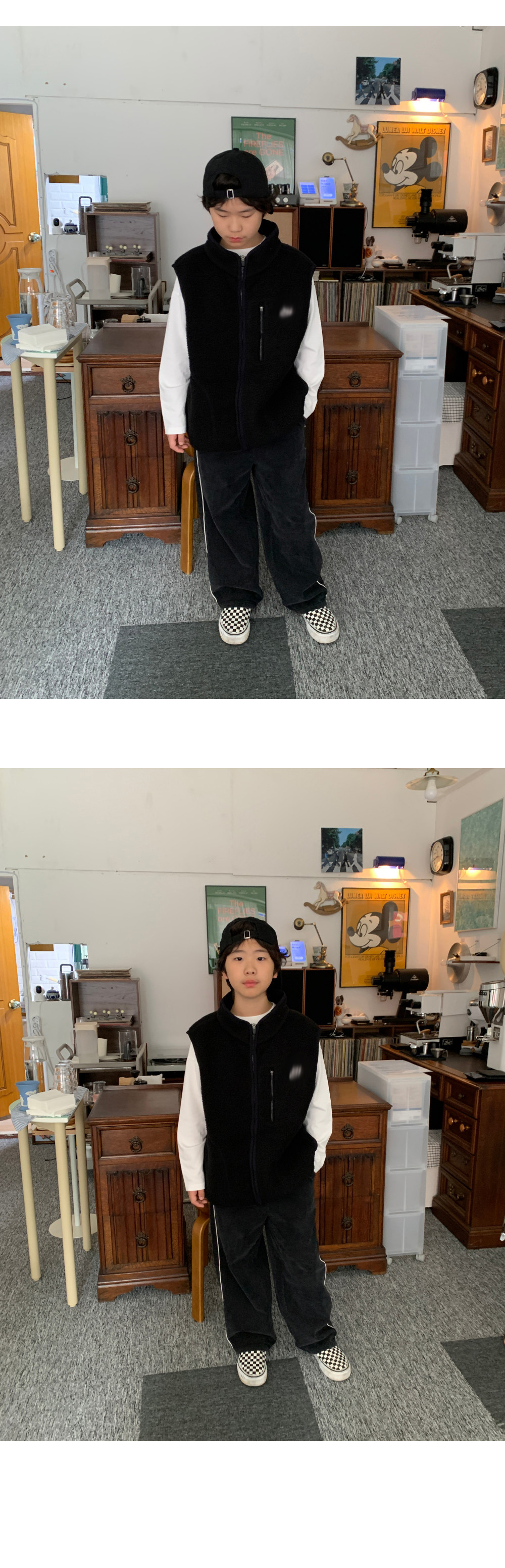 가볍지만 확실한 보온력을 자랑하는 오버핏 후리스 조끼예요.