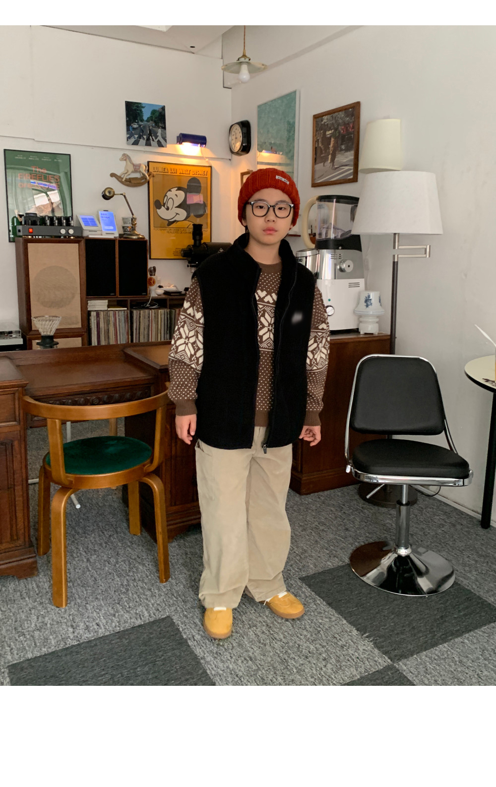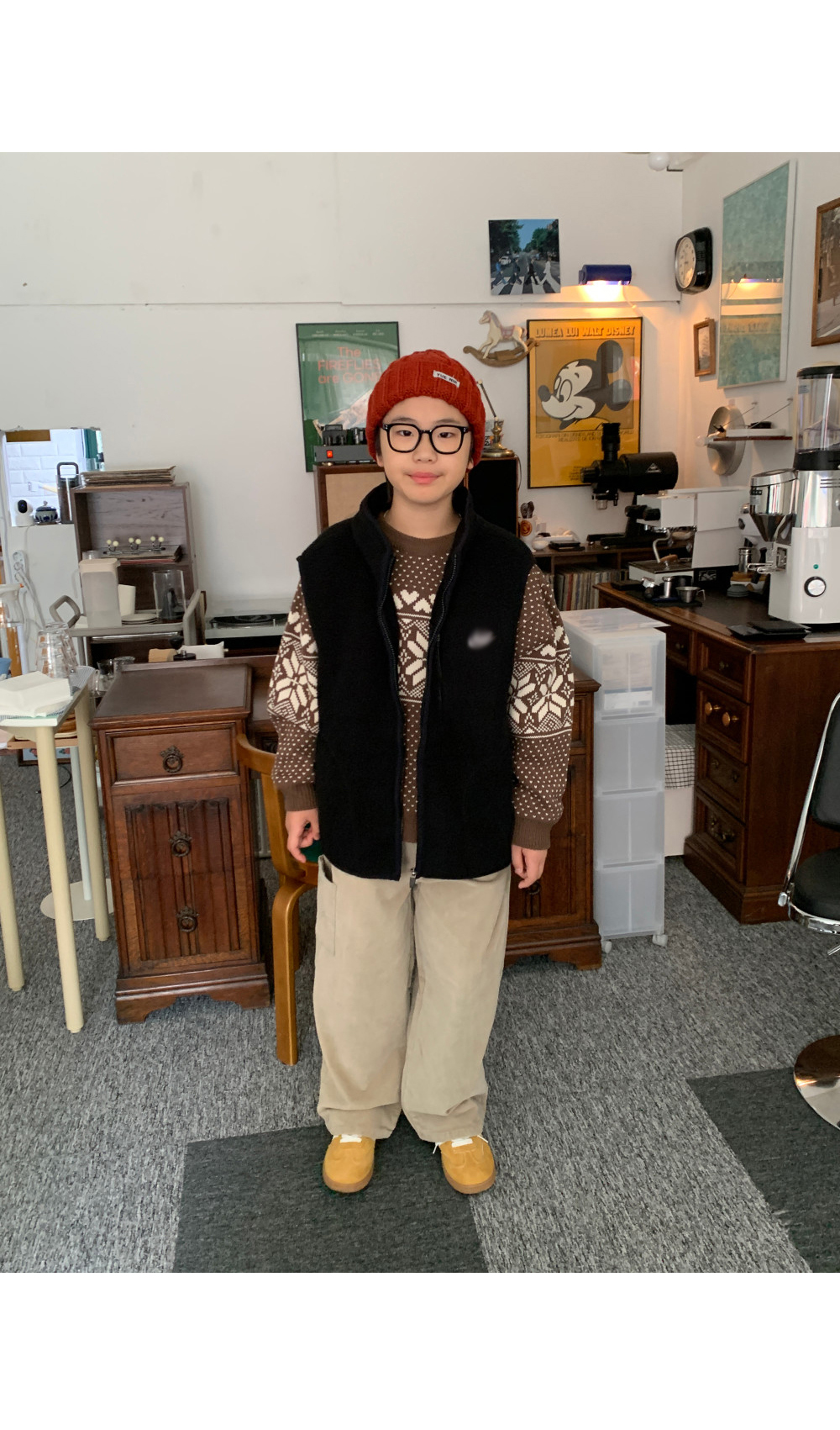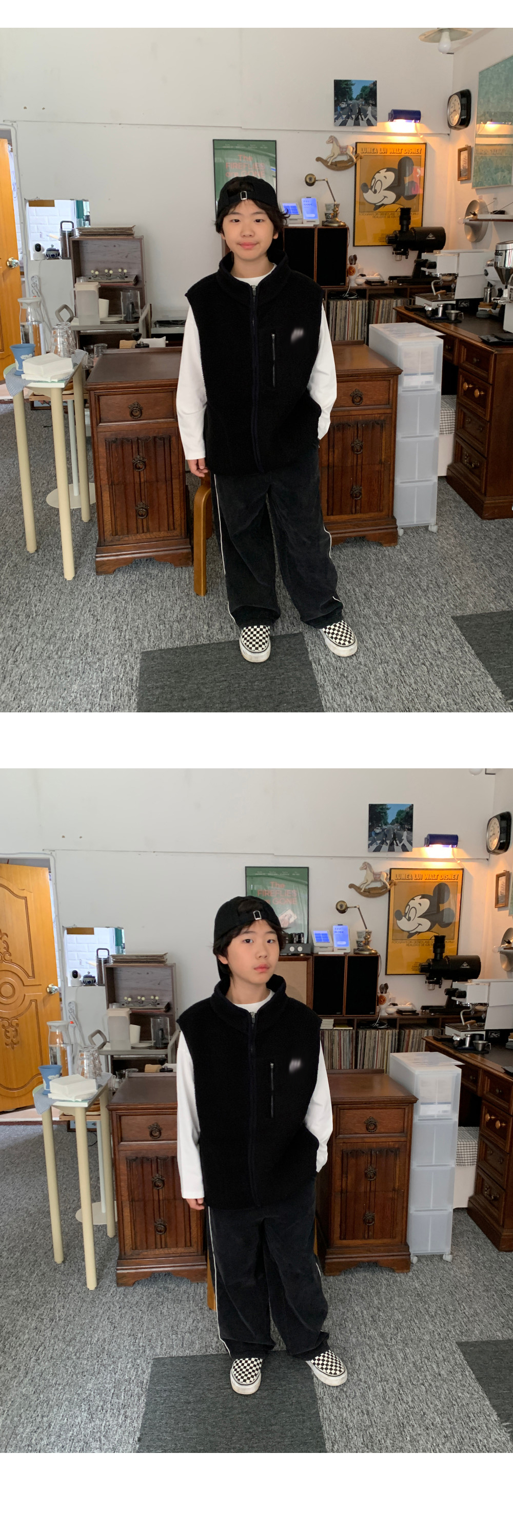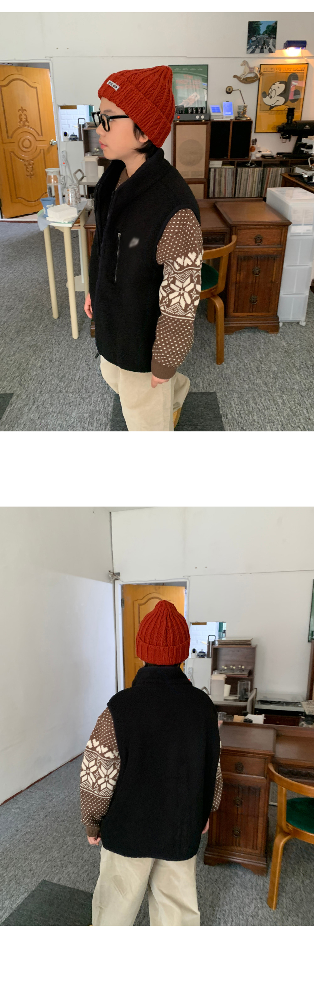 가볍지만 확실한 보온력을 자랑하는 오버핏 후리스 조끼예요.