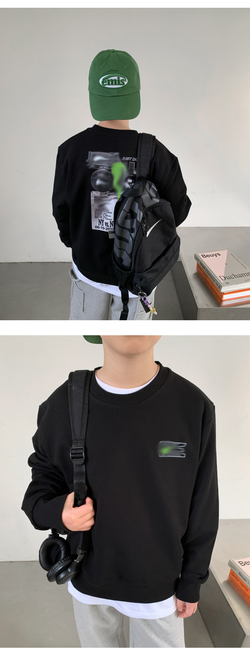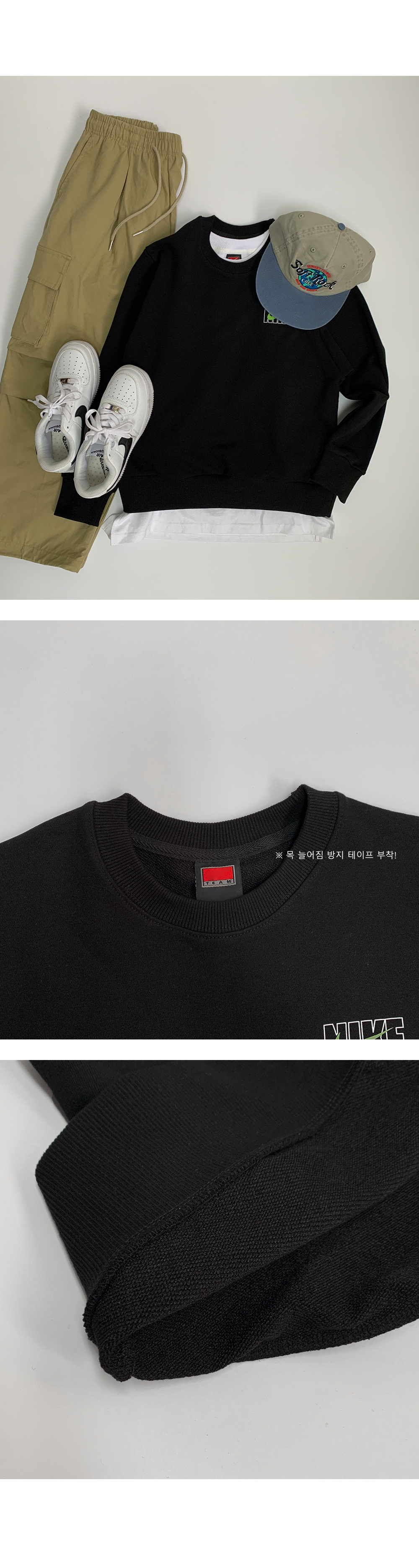 기본 블랙 맨투맨보다 코디가 훨씬 세련돼 보이고,
