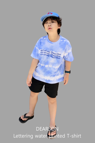 레터링 물나염반팔티셧