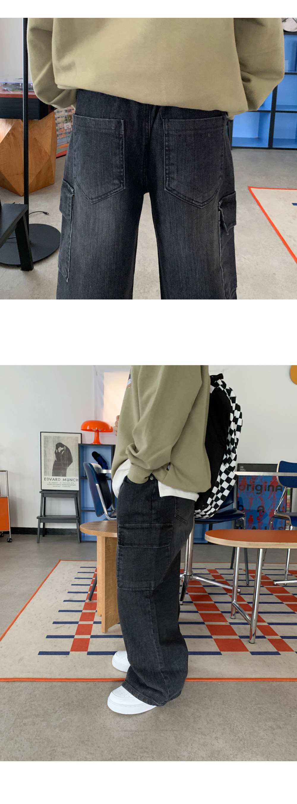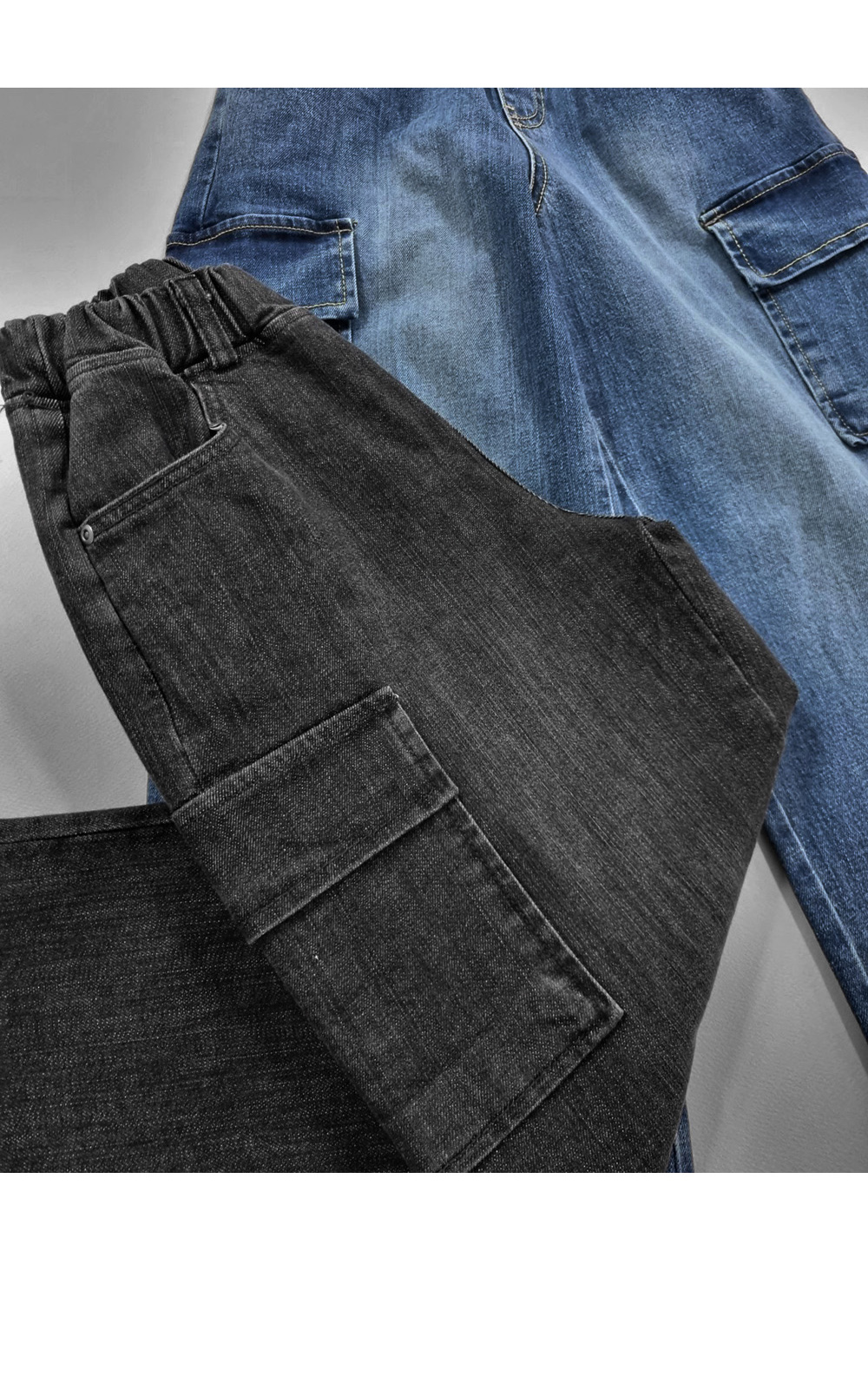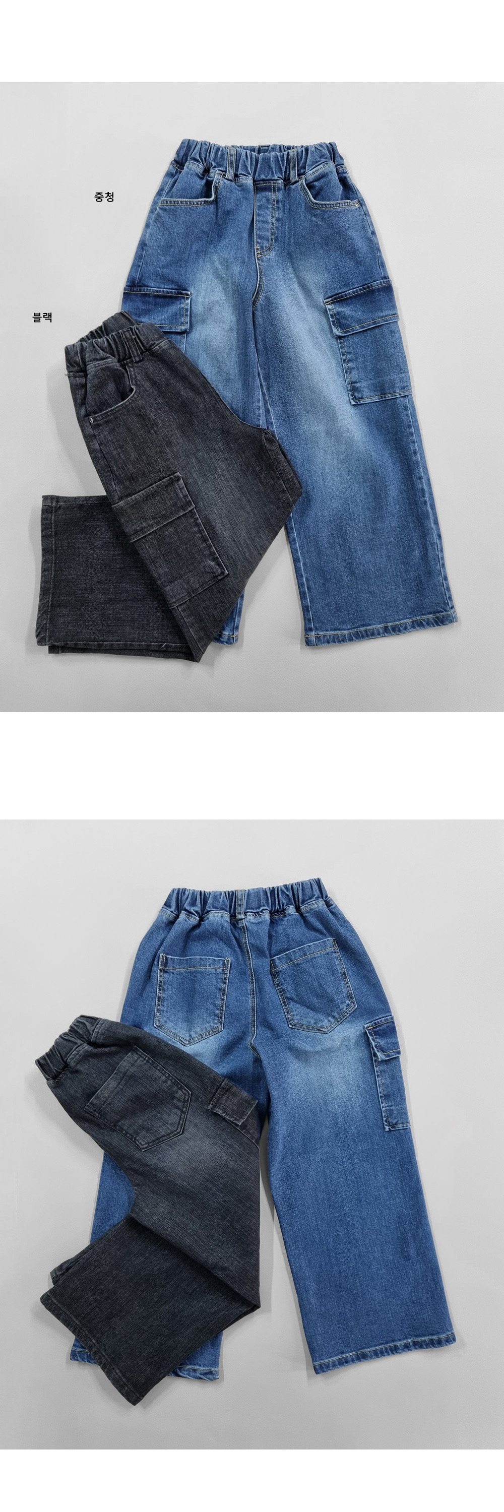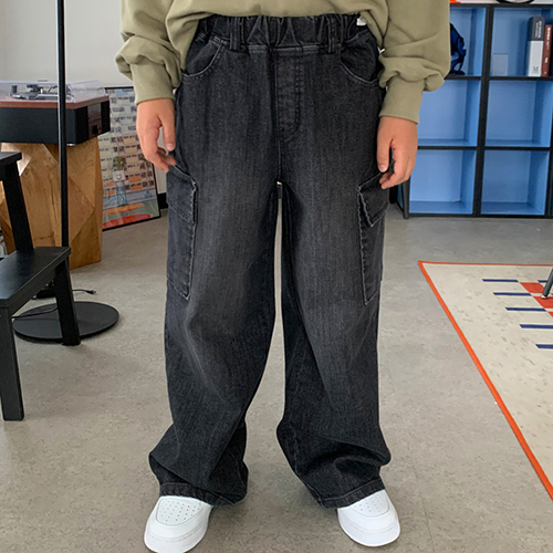 여유 있는 실루엣으로 스타일과 활동성을 모두 챙긴 와이드 카고 데님 팬츠입니다.