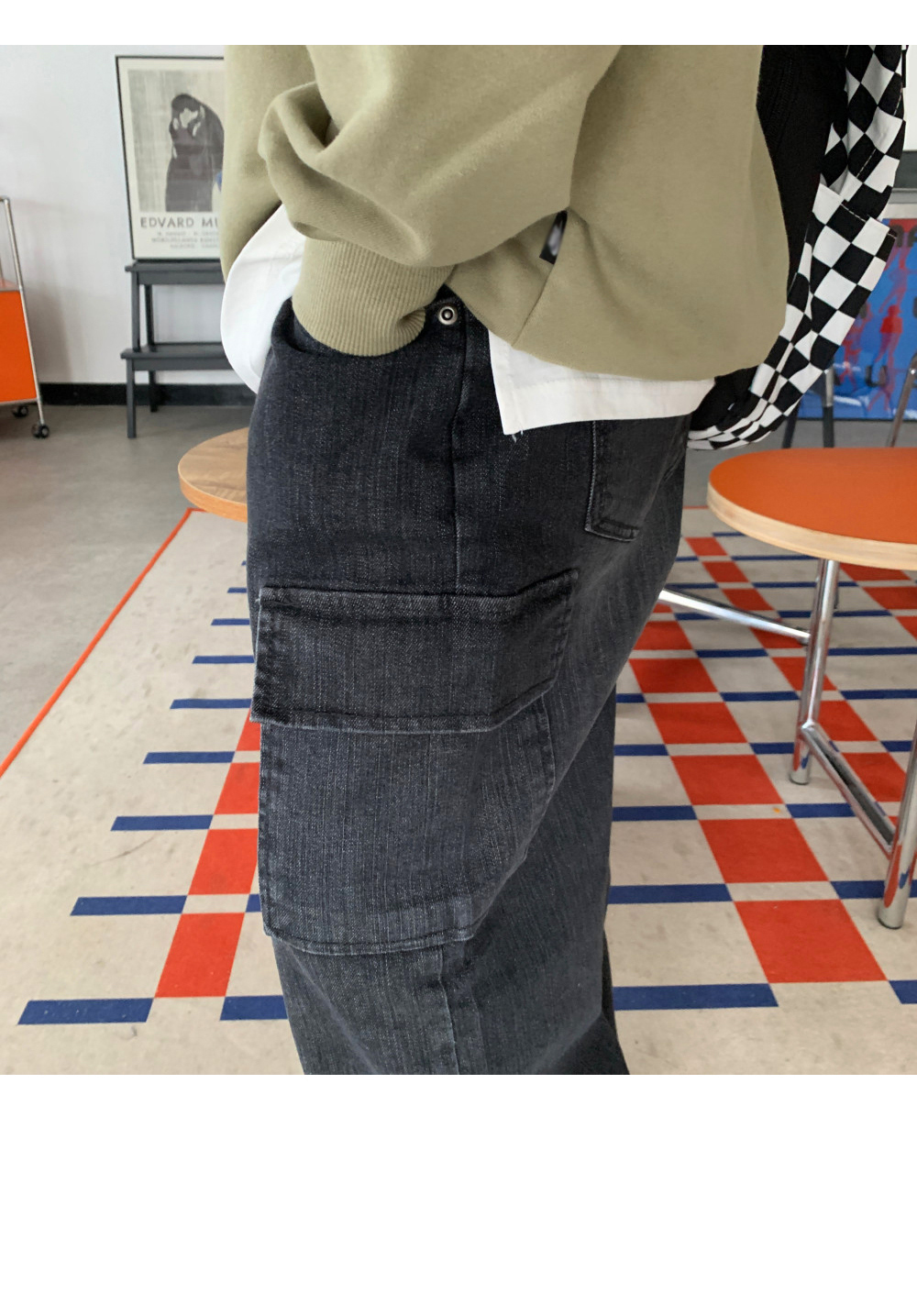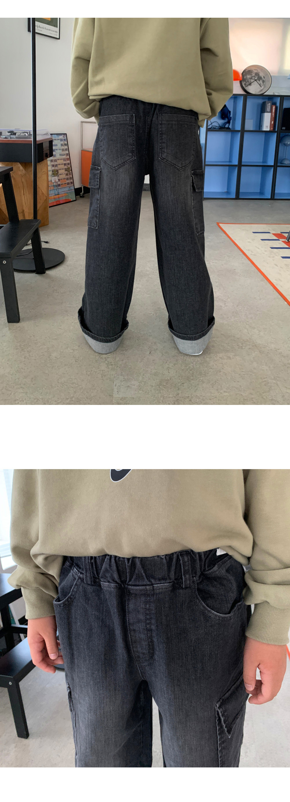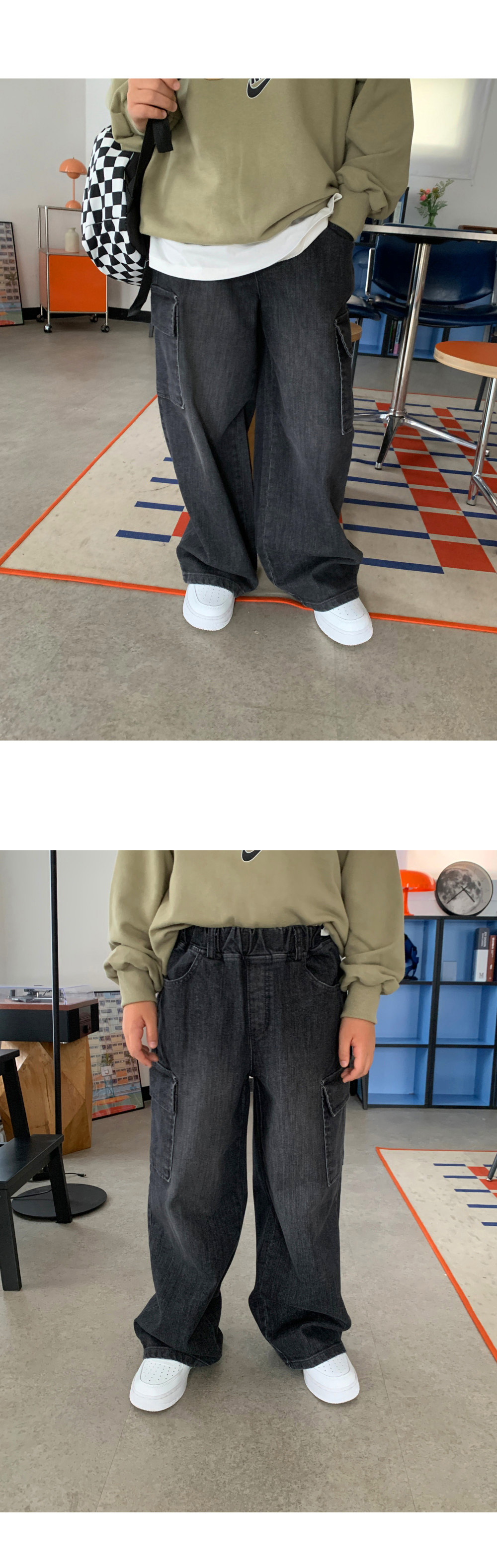 여유 있는 실루엣으로 스타일과 활동성을 모두 챙긴 와이드 카고 데님 팬츠입니다.