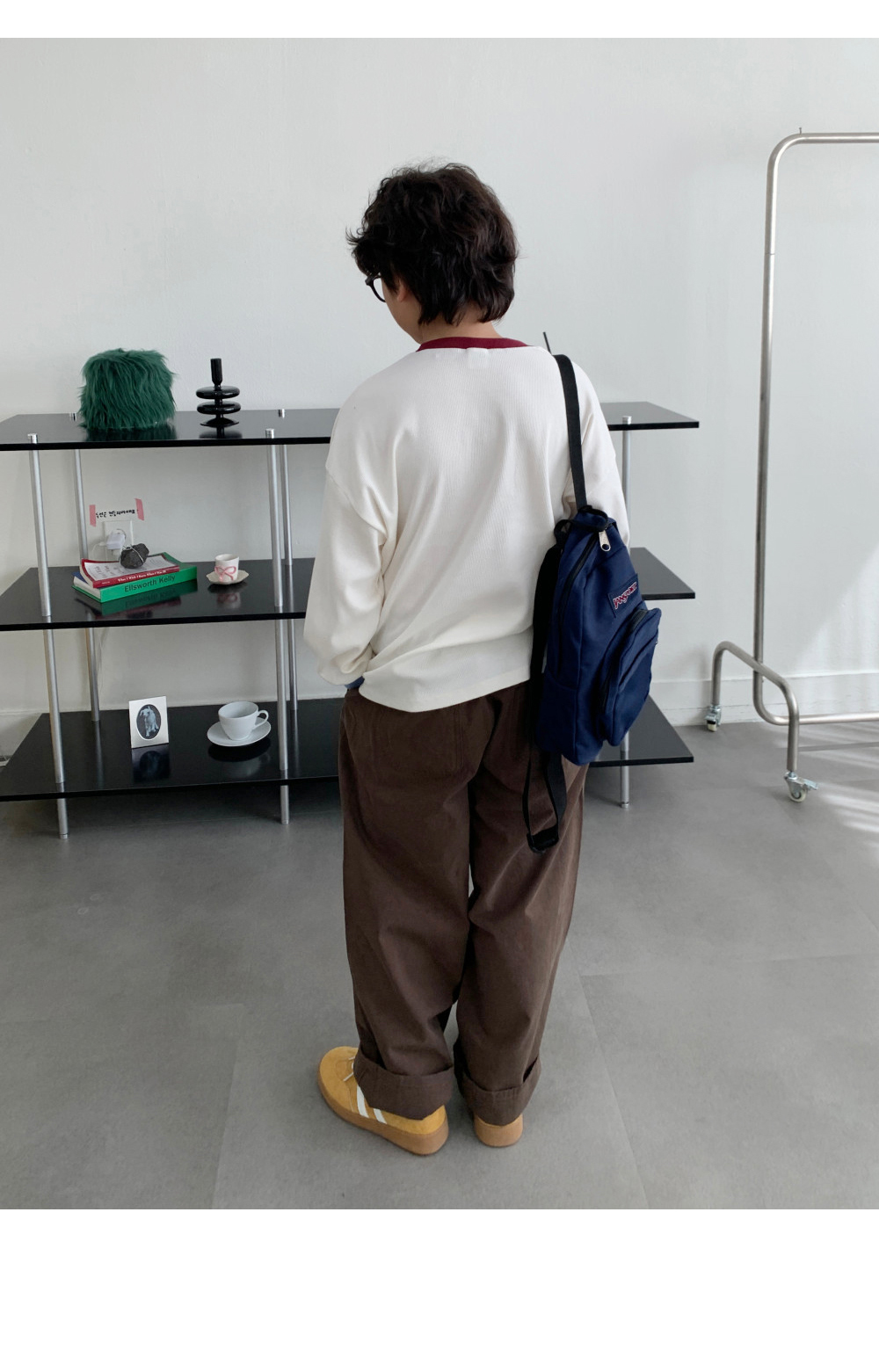 심플한 디자인이지만 자연스러운 주름과 여유 있는 핏으로 감각적인 캐주얼 룩을 완성해 줍니다.