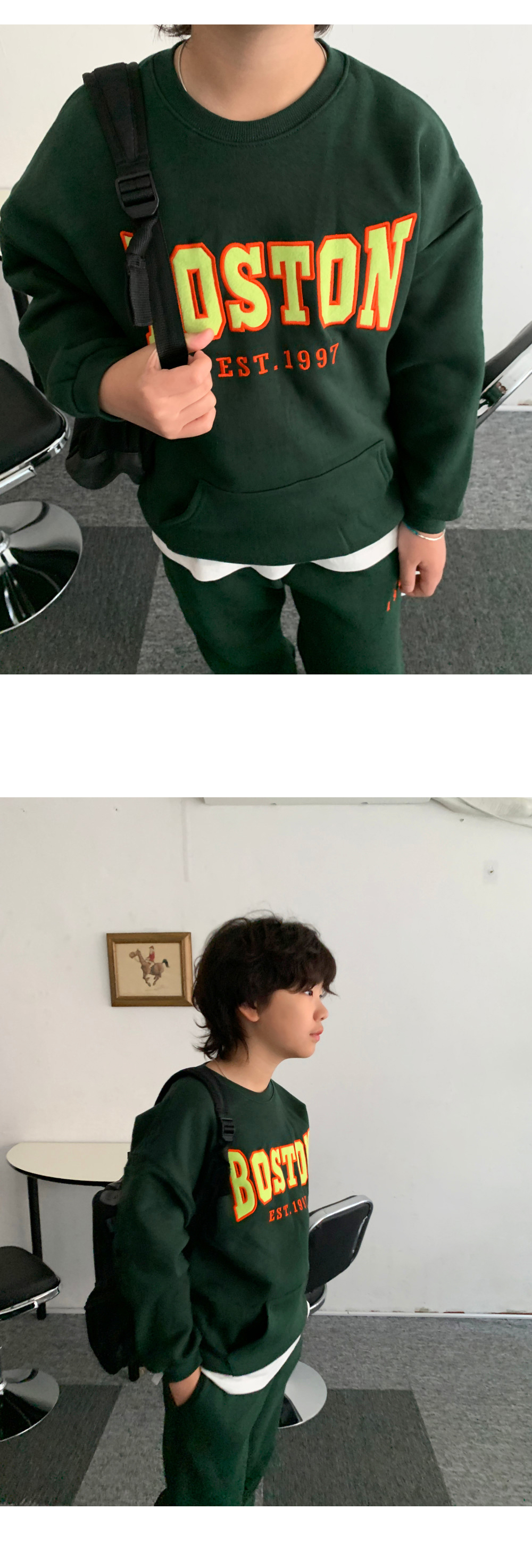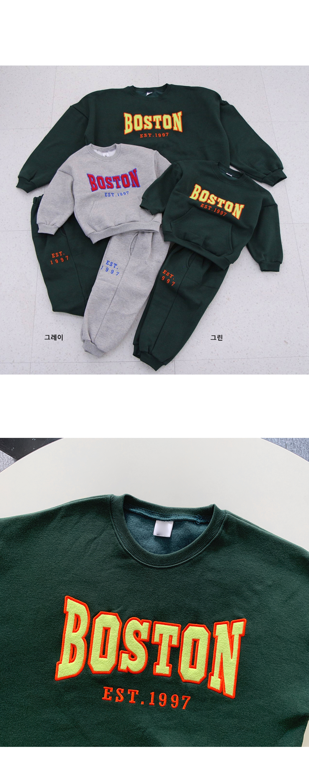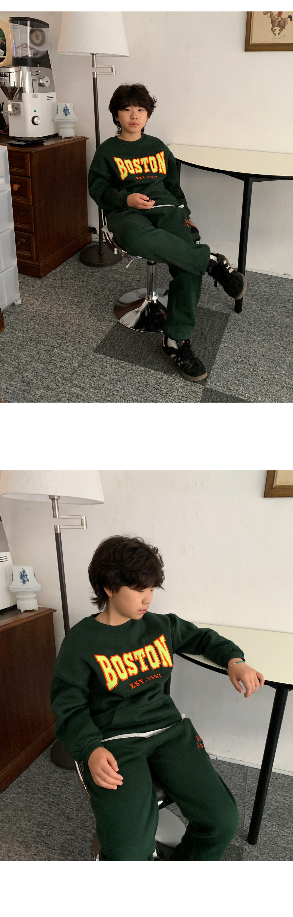 보는 순간 시선이 꽂히는 BOSTON 기모 트레이닝 세트예요.