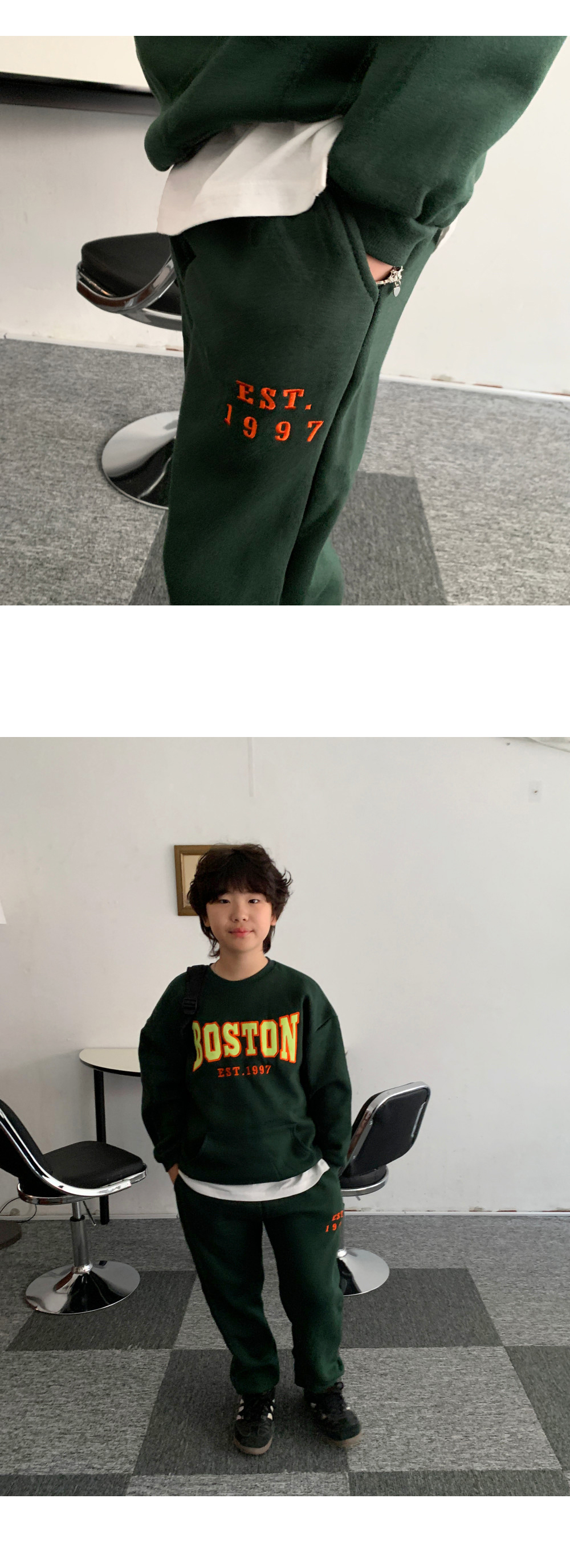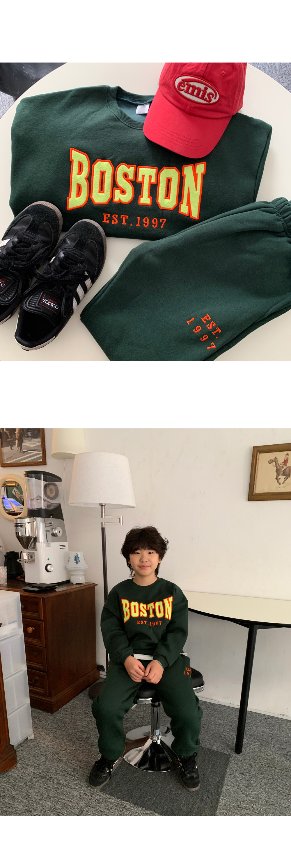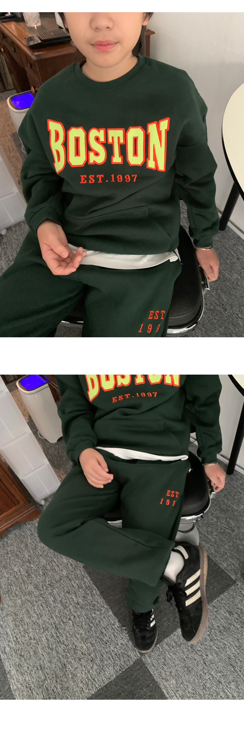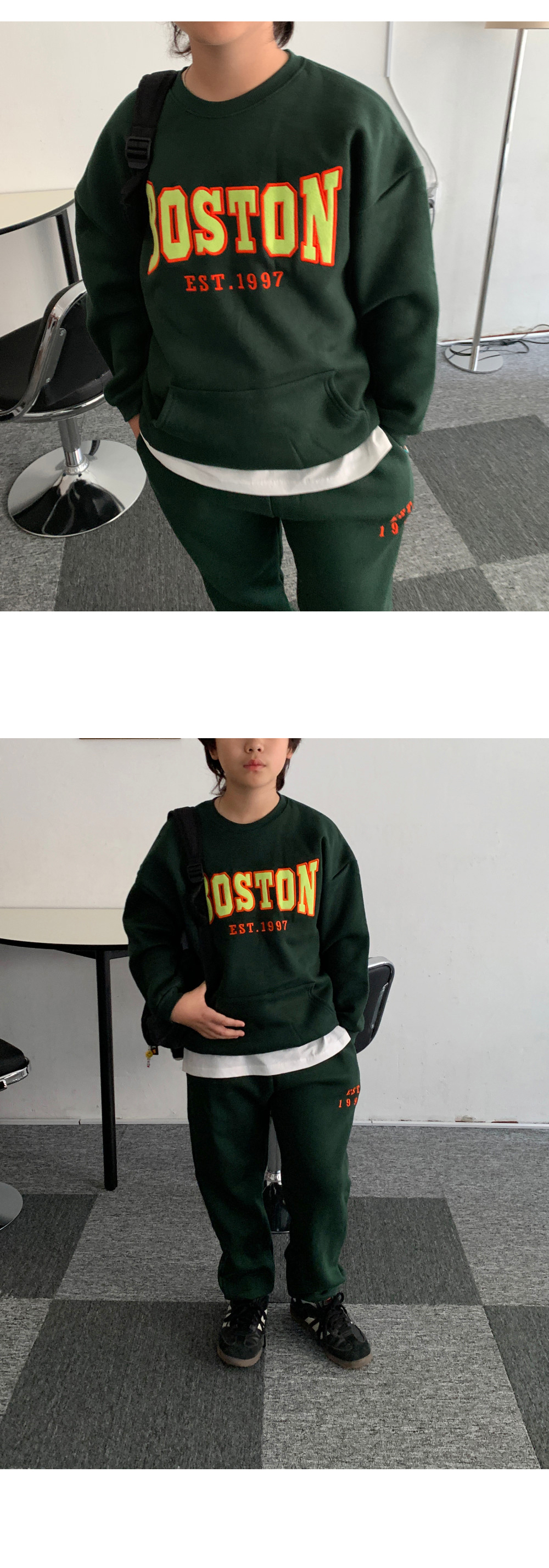 보는 순간 시선이 꽂히는 BOSTON 기모 트레이닝 세트예요.
