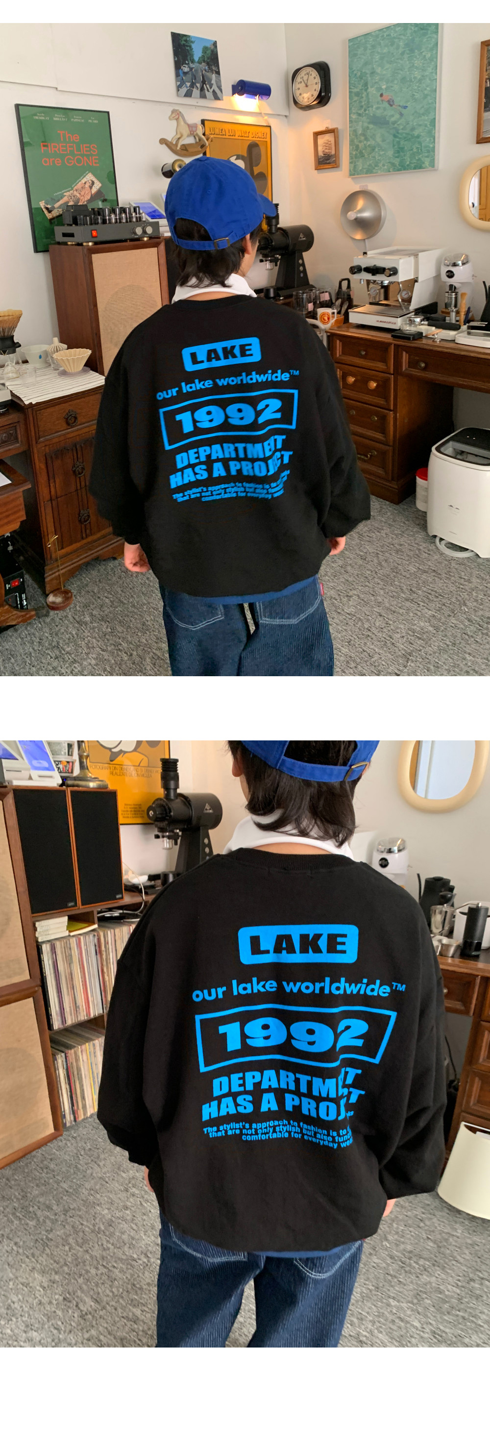 하루 룩에 포인트를 더해주는 스트릿 무드 맨투맨이에요.