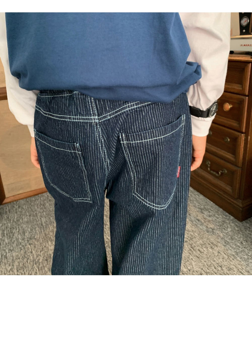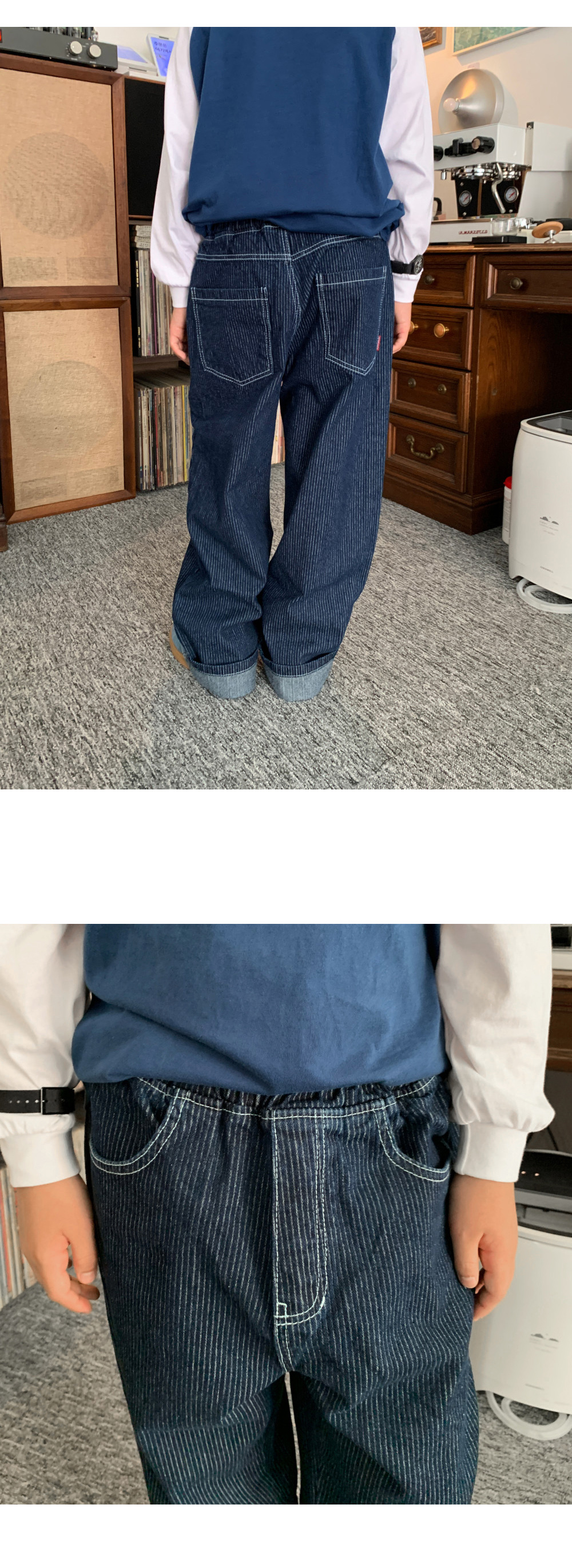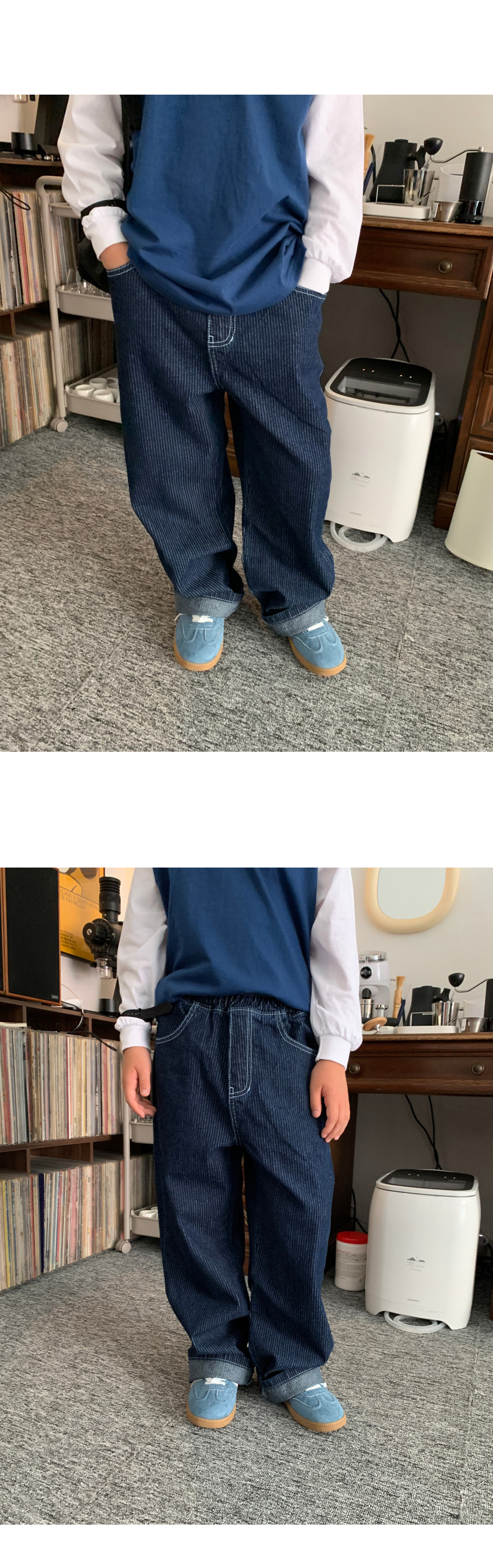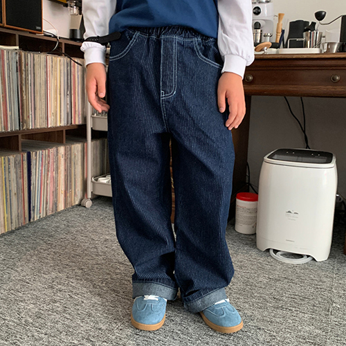 스트릿 감성 가득한 와이드핏 스트라이프 데님팬츠예요.