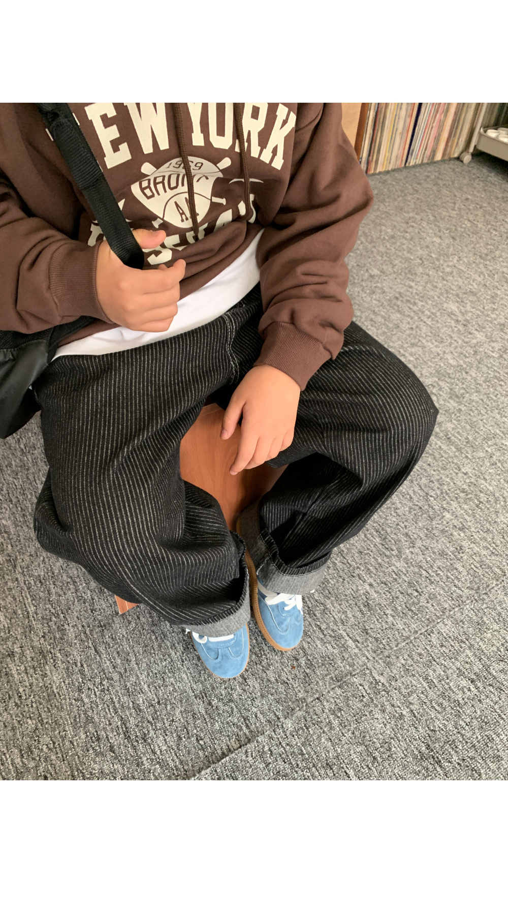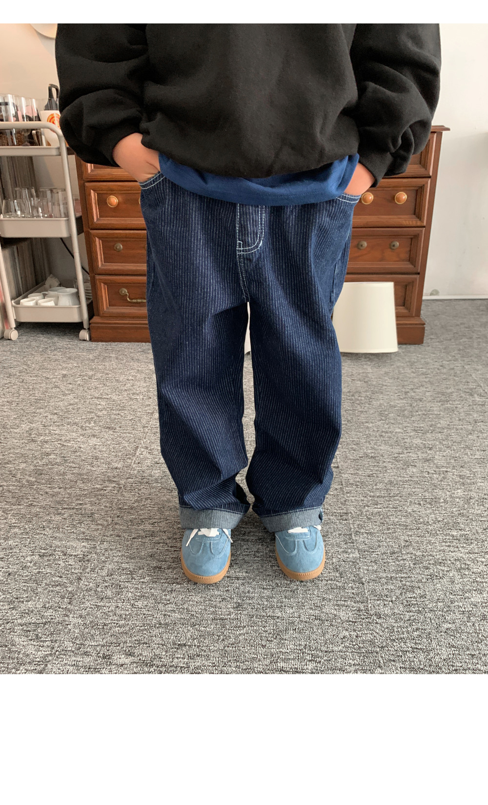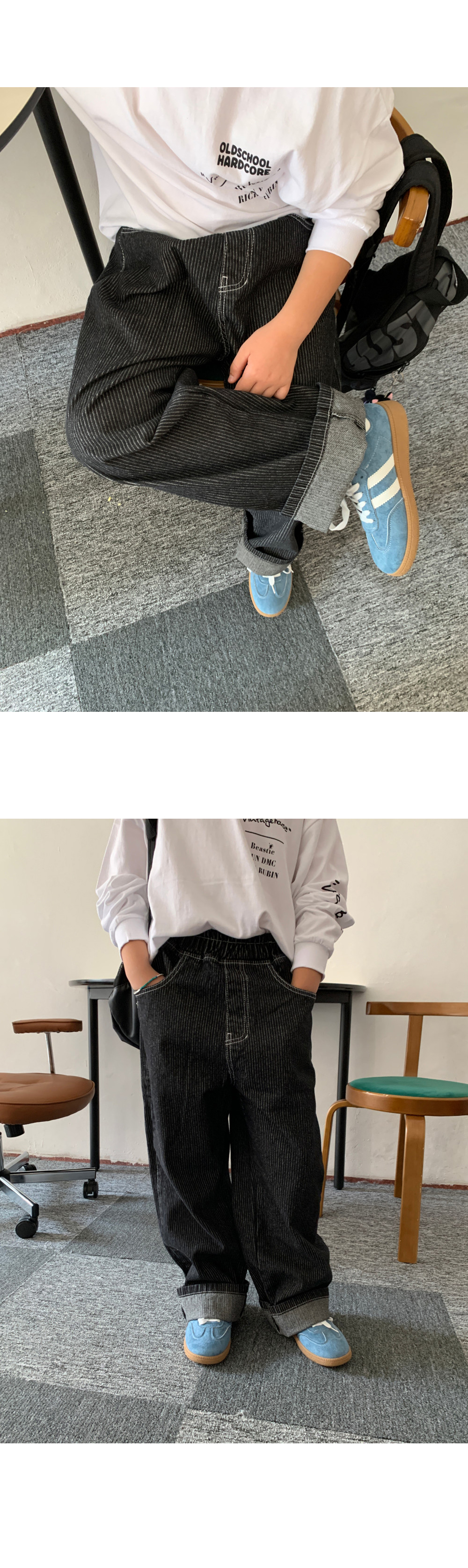 스트릿 감성 가득한 와이드핏 스트라이프 데님팬츠예요.