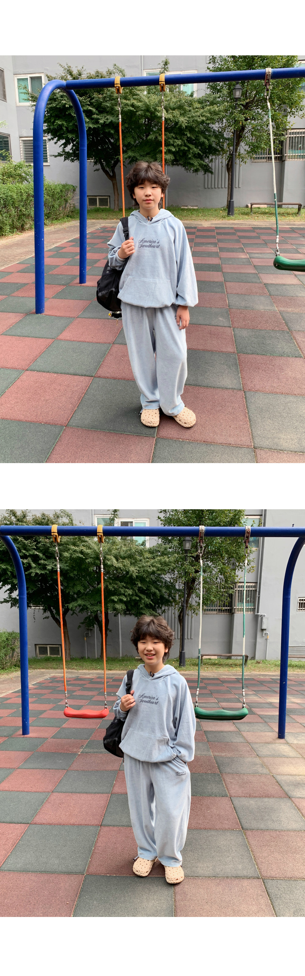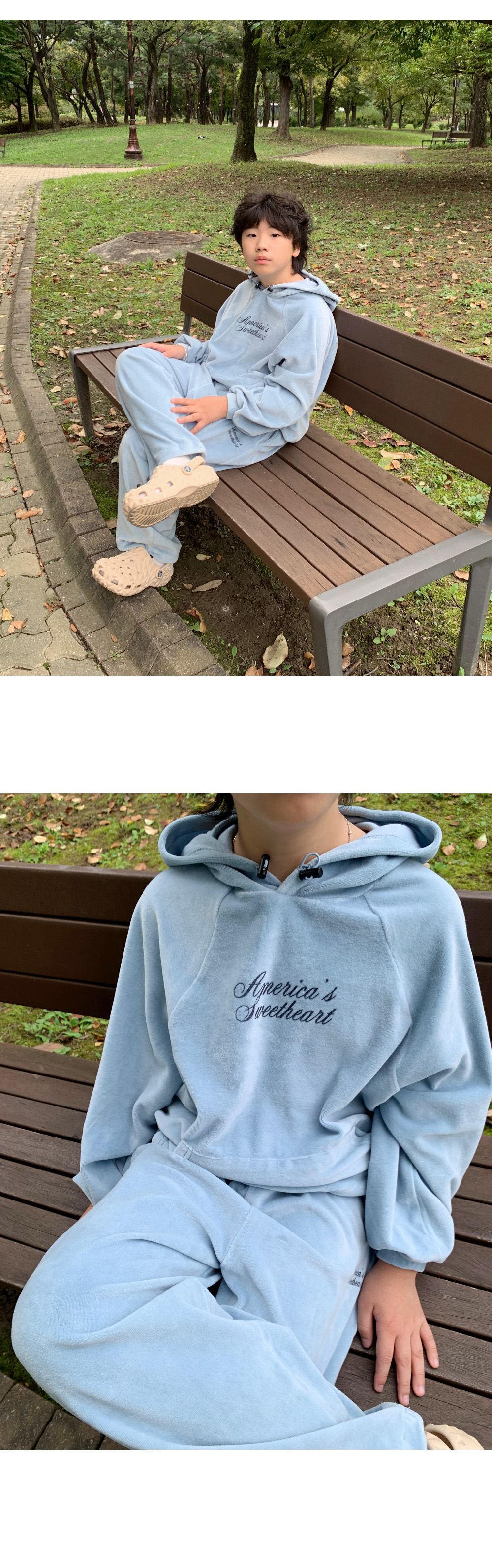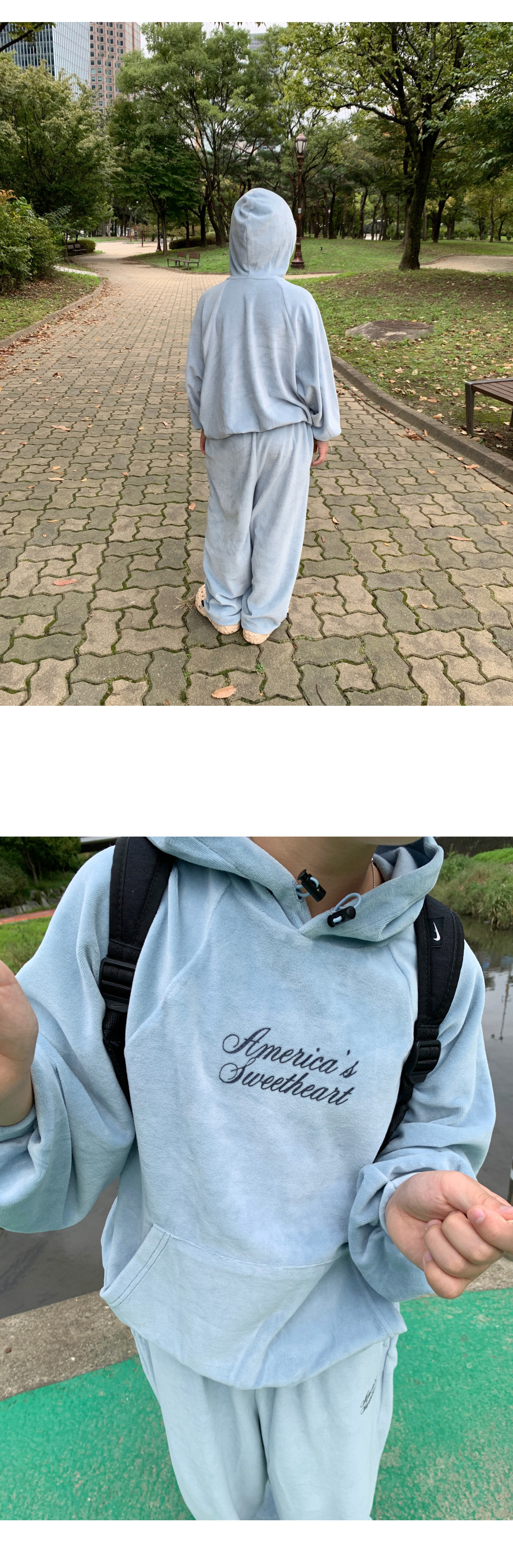 편안함과 스타일을 동시에 챙긴 벨벳 후드 상하세트예요.