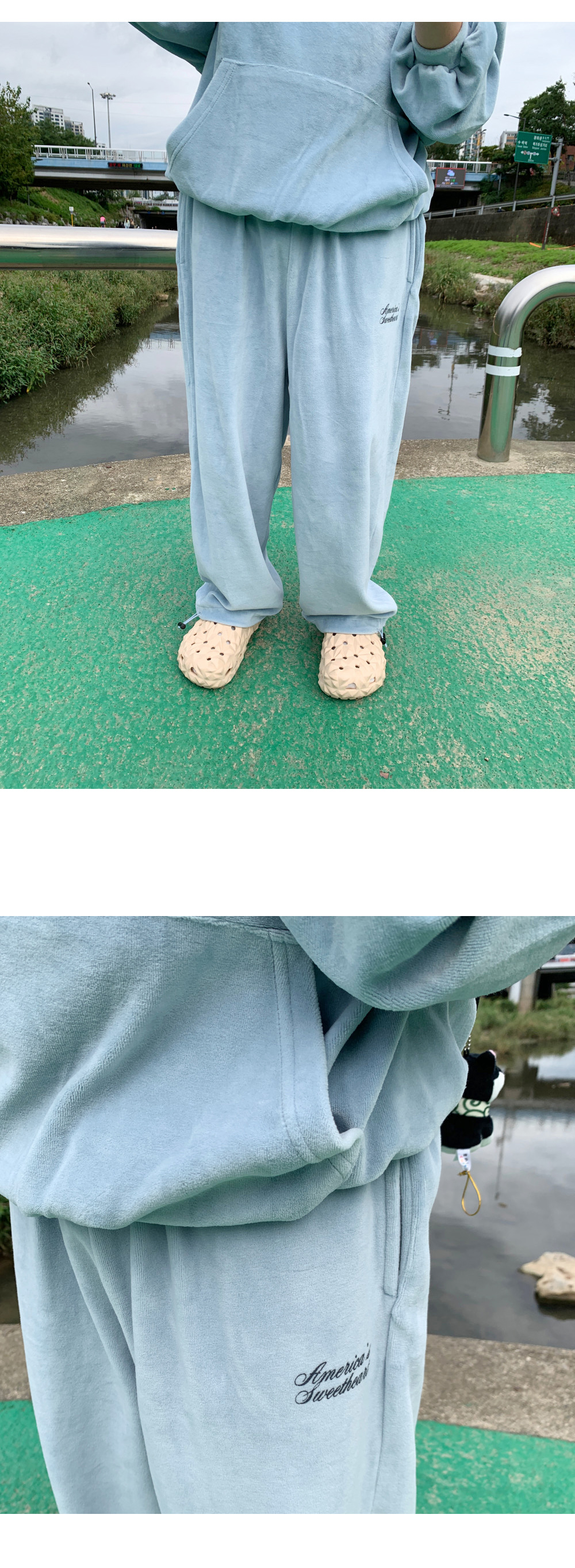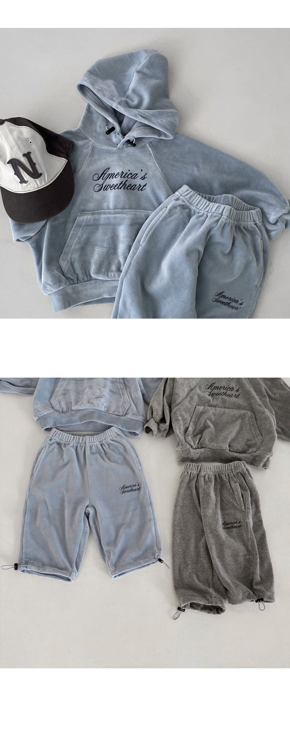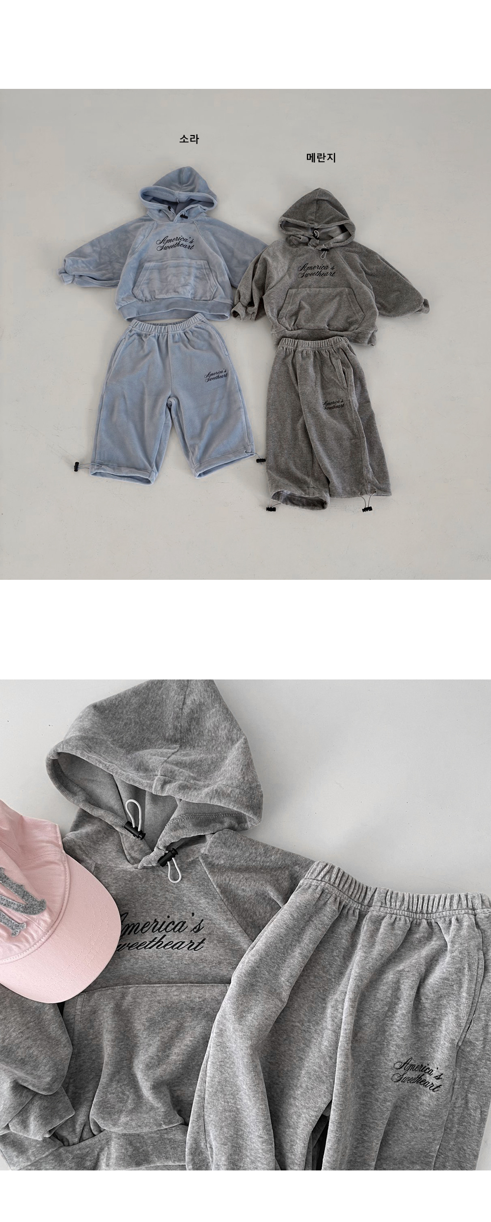 편안함과 스타일을 동시에 챙긴 벨벳 후드 상하세트예요.