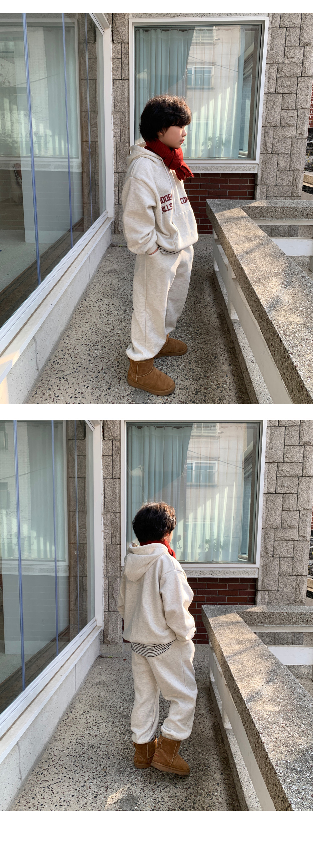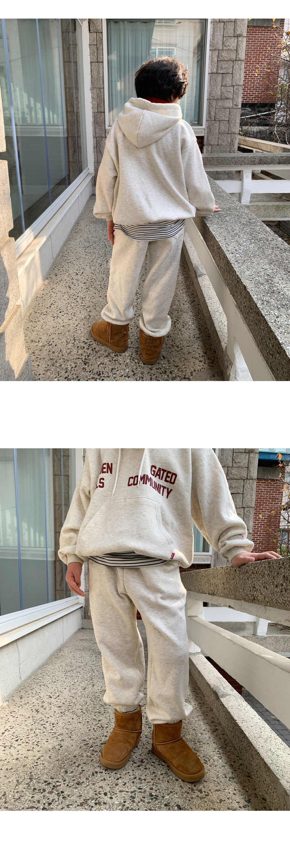 루즈한 후드 + 조거팬츠 조합으로